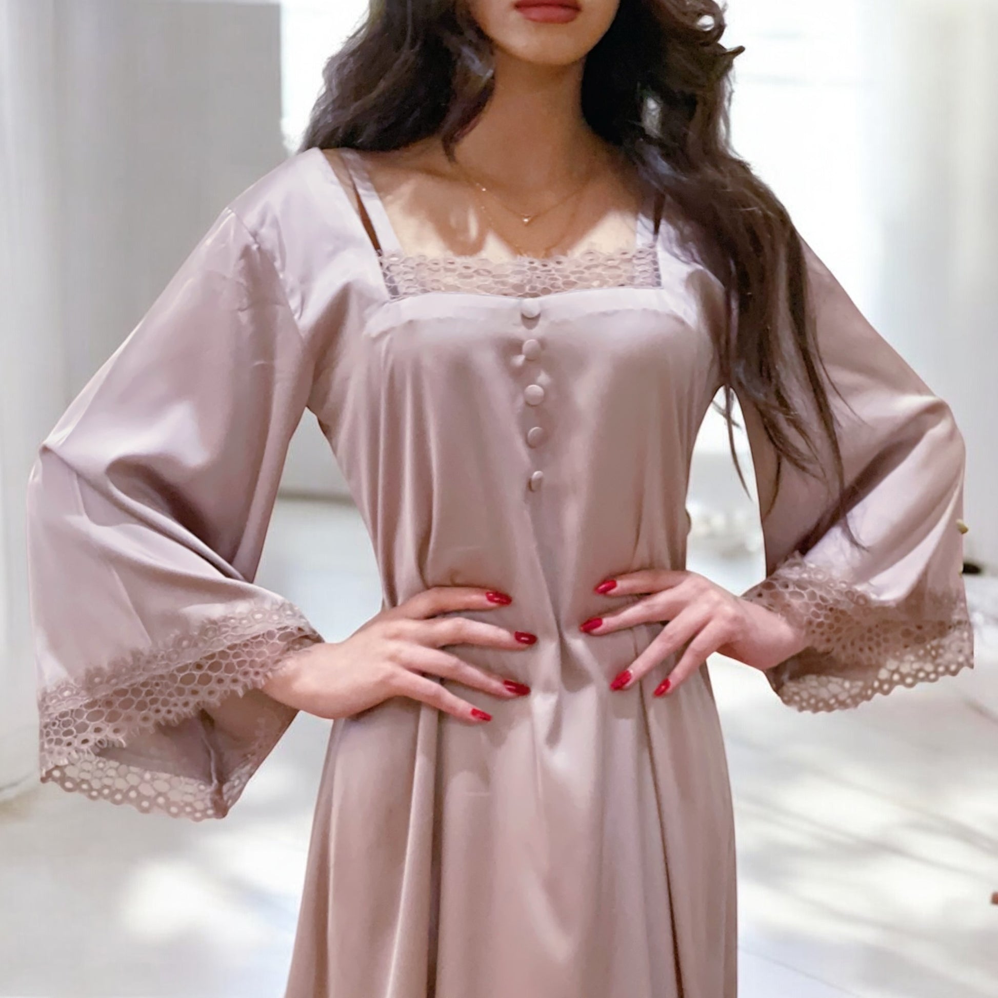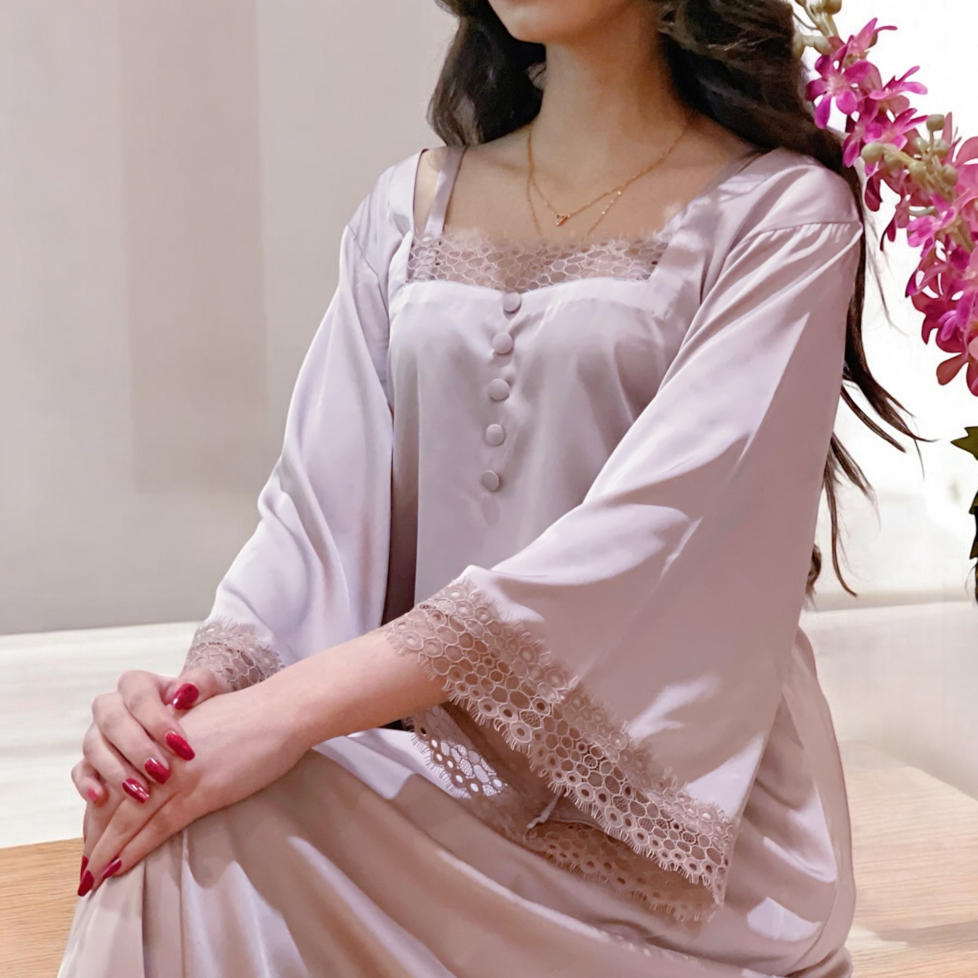 جلابية حرير ارماني مع دانتيل فرنسي