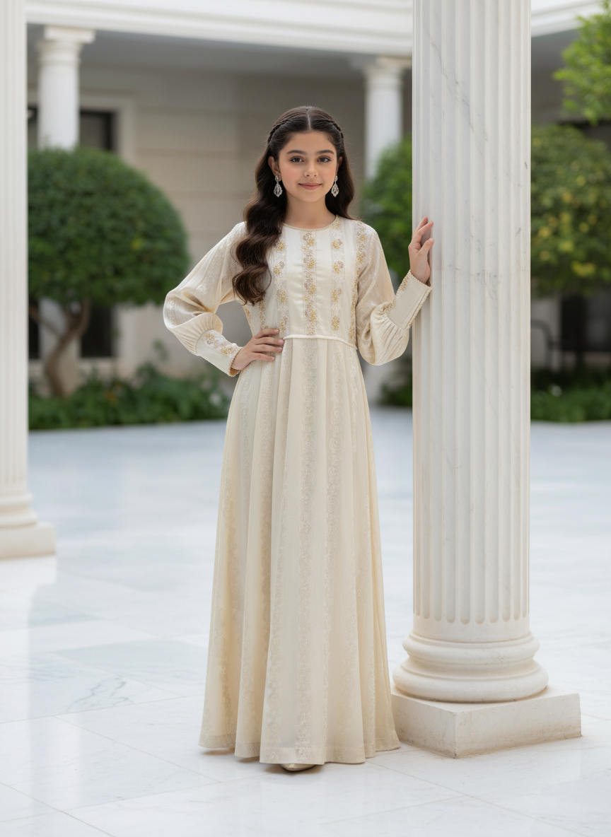 اختاري المقاس المناسب لأبنتكِ لا تعديل و لا تبديل من خلال اتباع القياسات الآتيه الصدر فقط من الامام