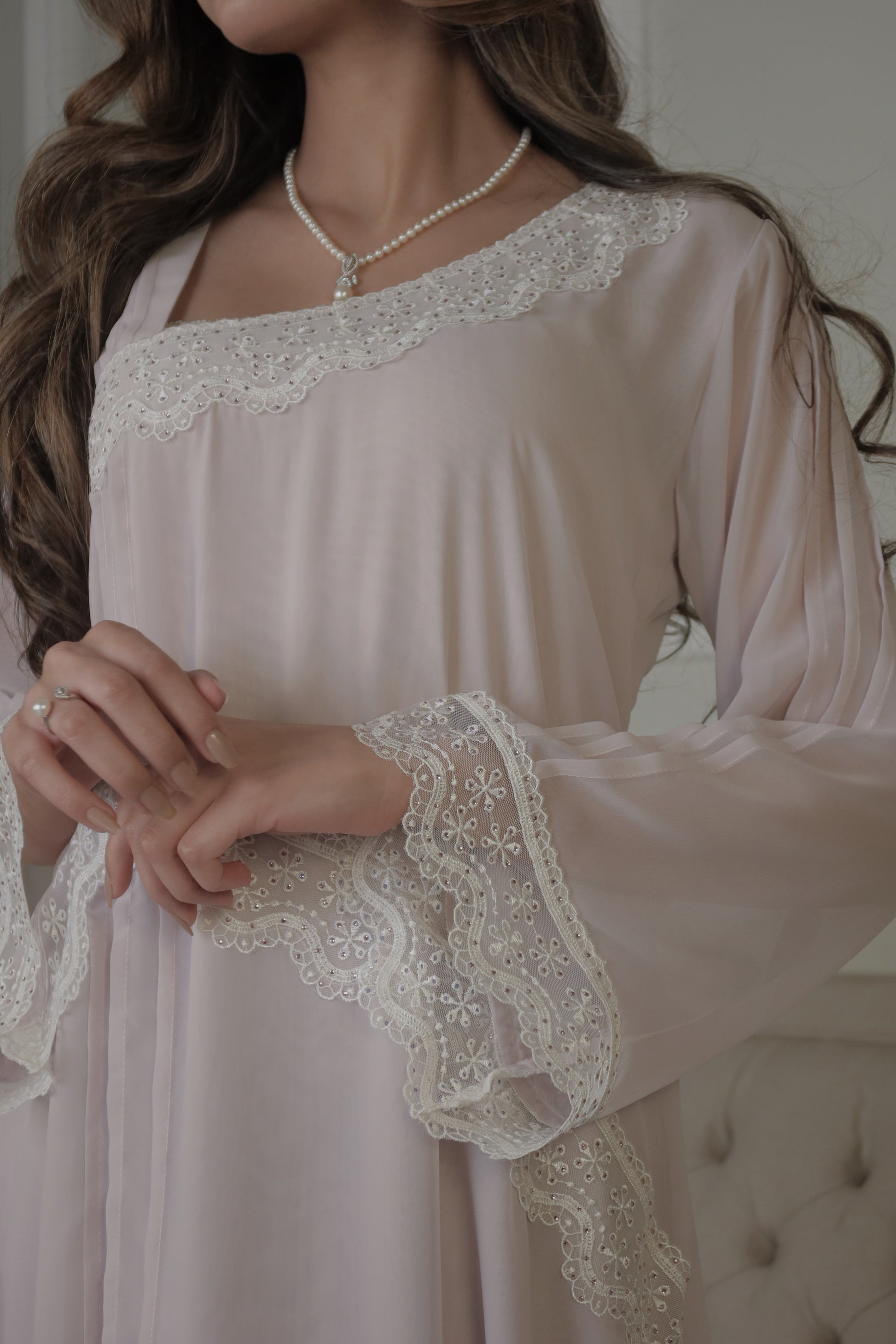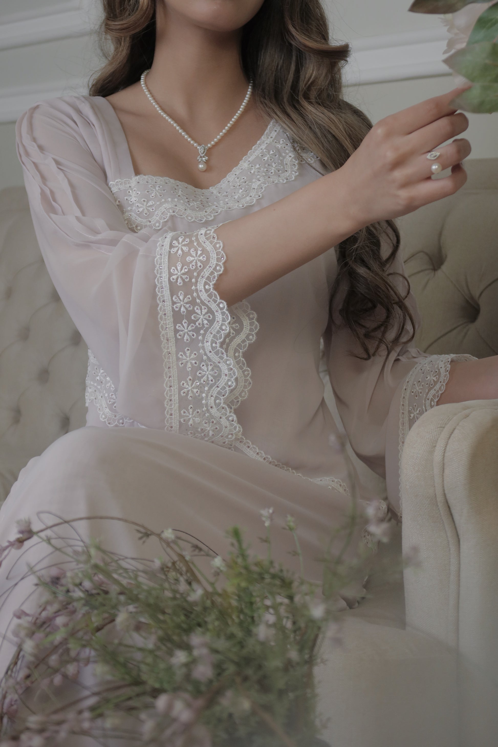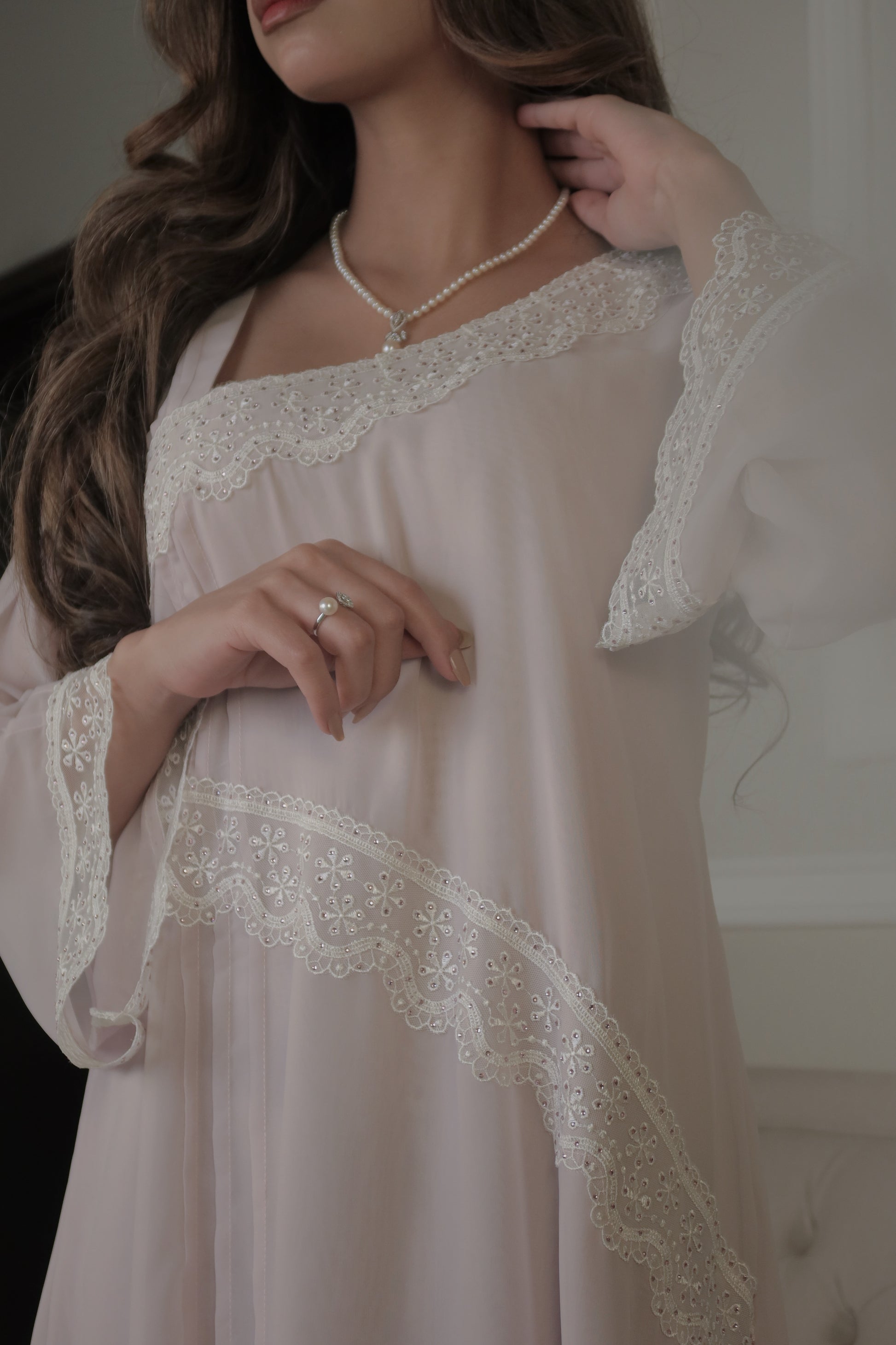 شيفون بنفسجي فاااتح مع دانتيل وريمبو