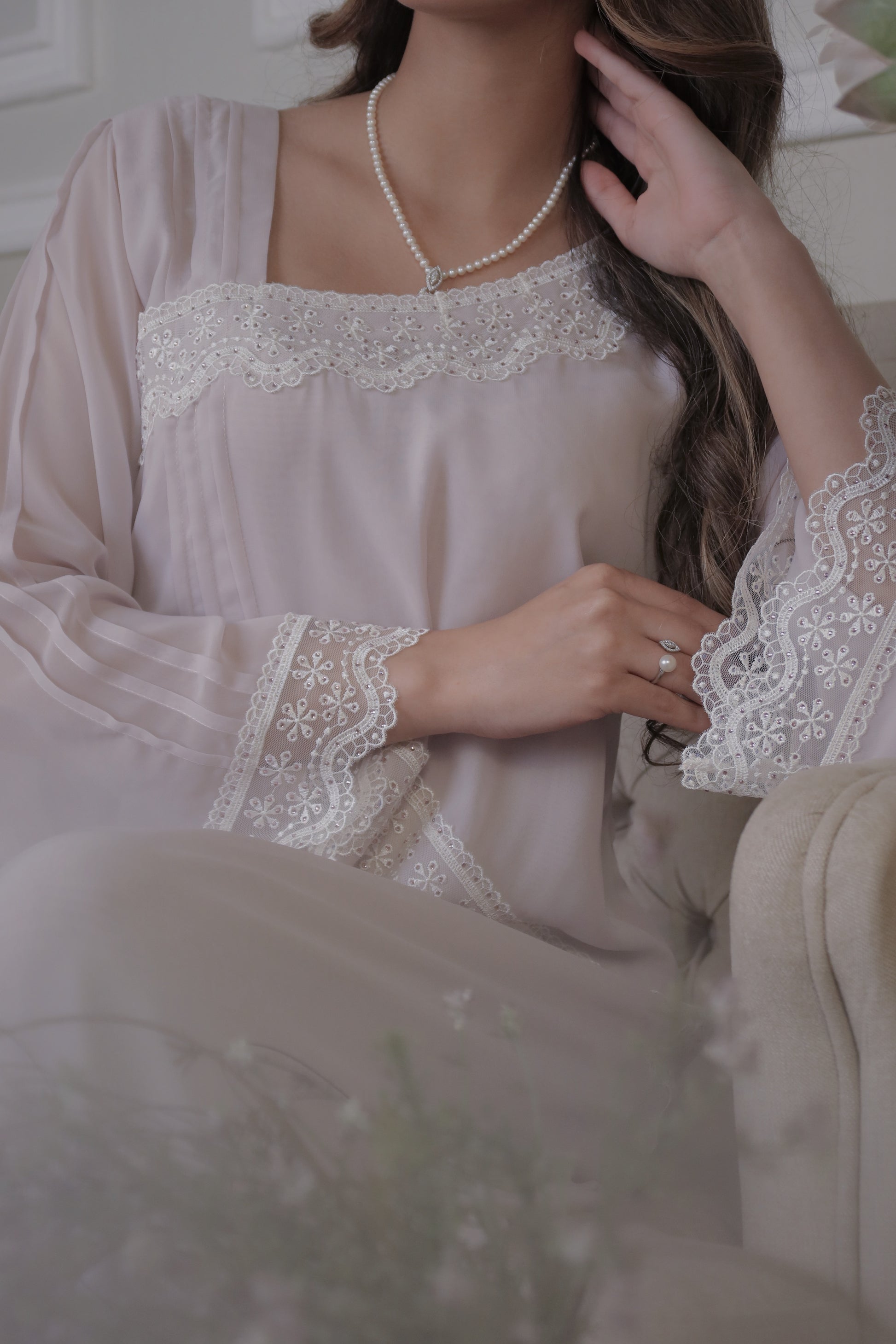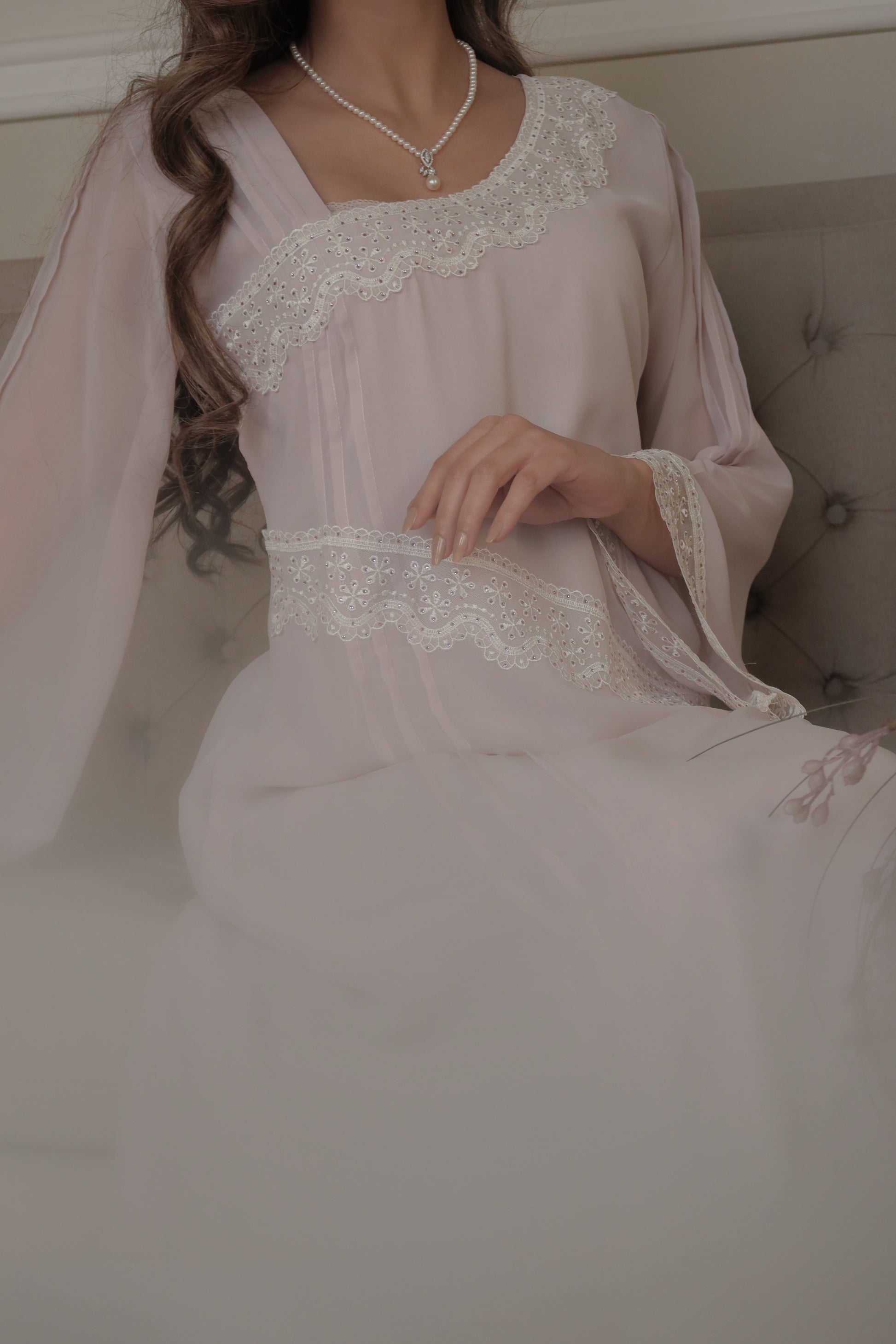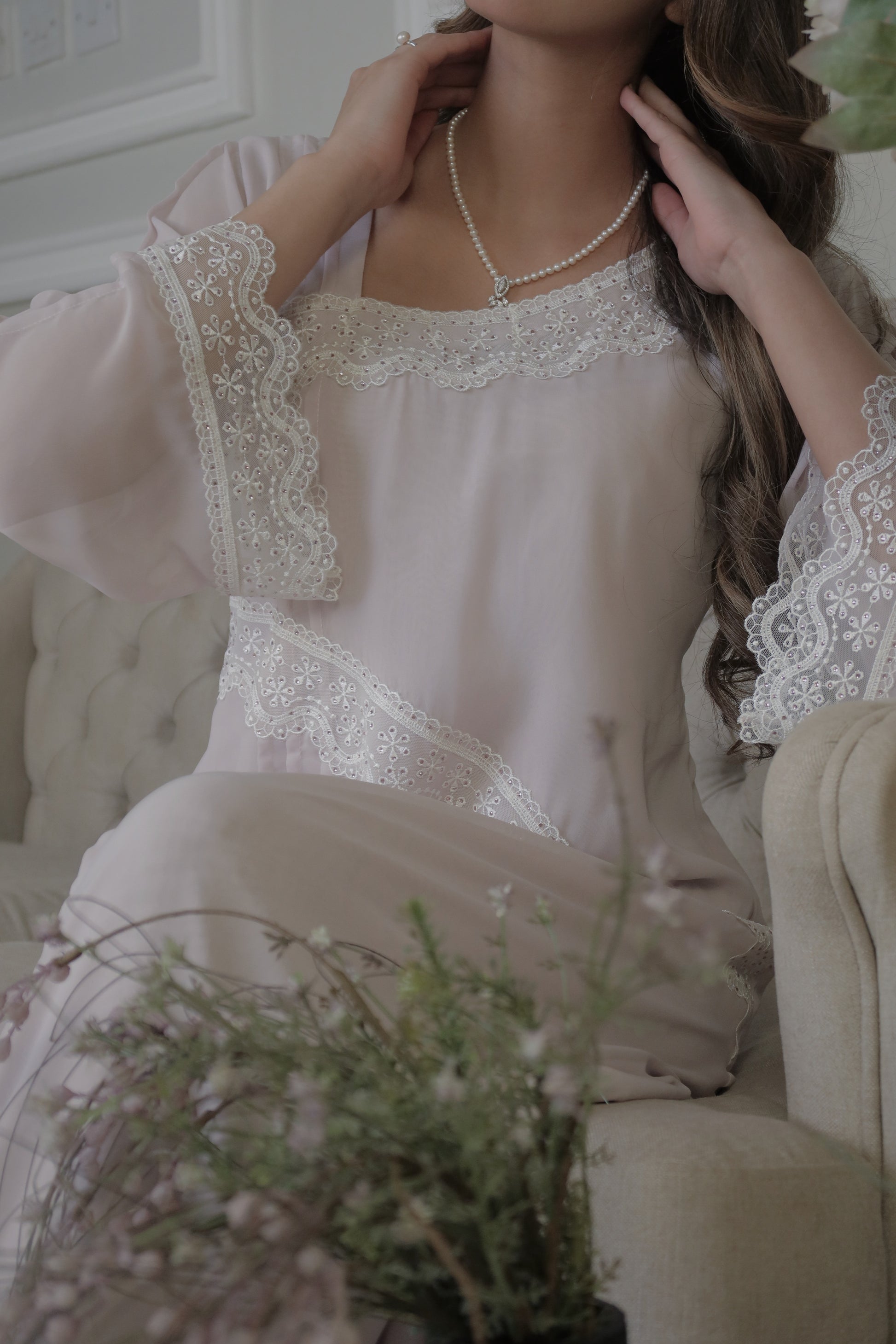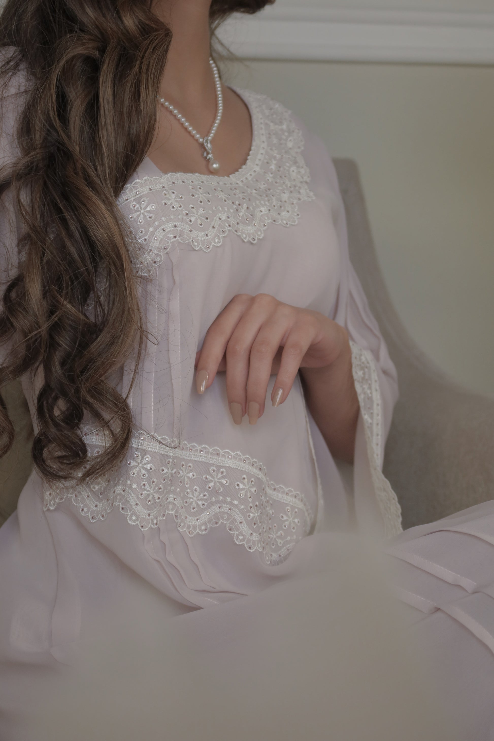 شيفون بنفسجي فاااتح مع دانتيل وريمبو