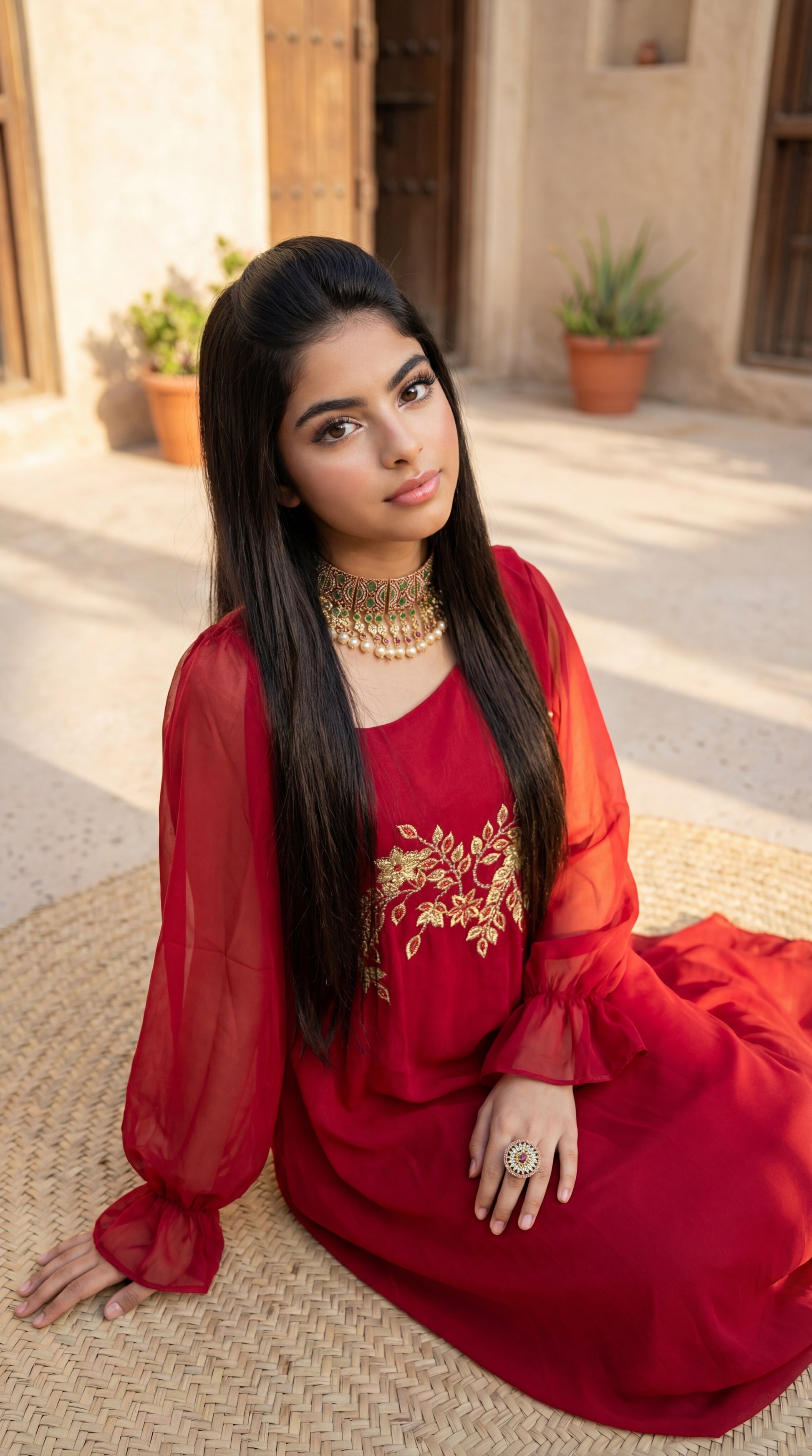 - مقاس Medium: الصدر 20 إنش، الطول حسب طلب الزبونة