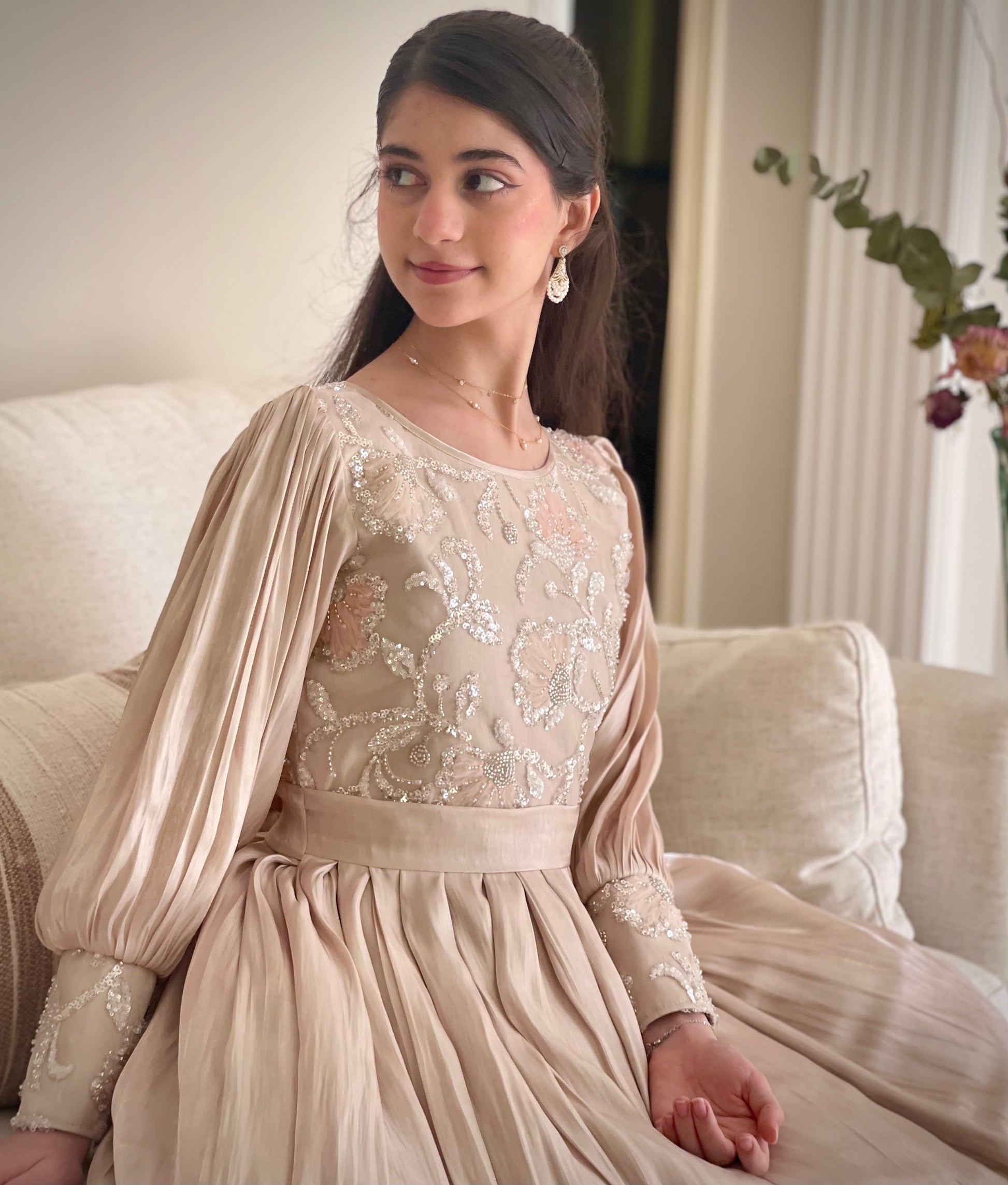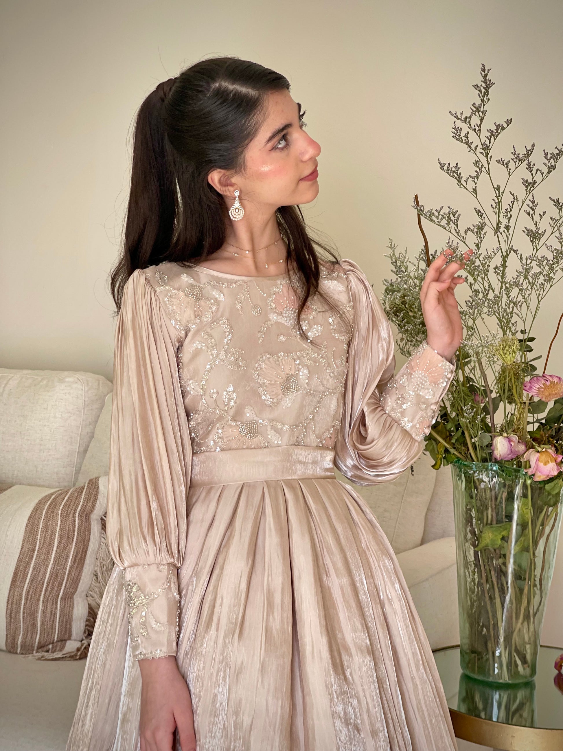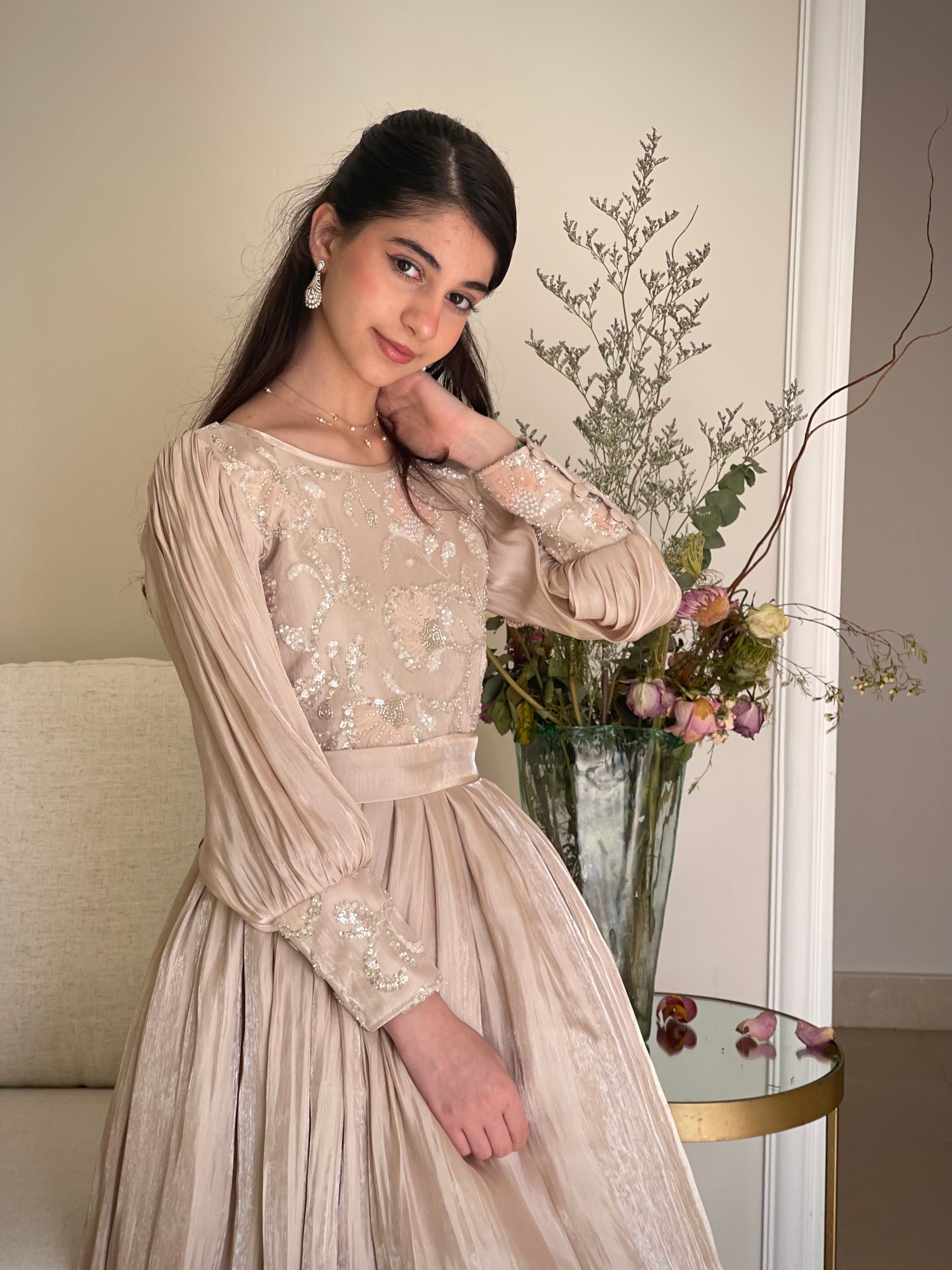 فستان روز ارجنزا مع صدرية مشغوله وجيبون داخلي منفصل