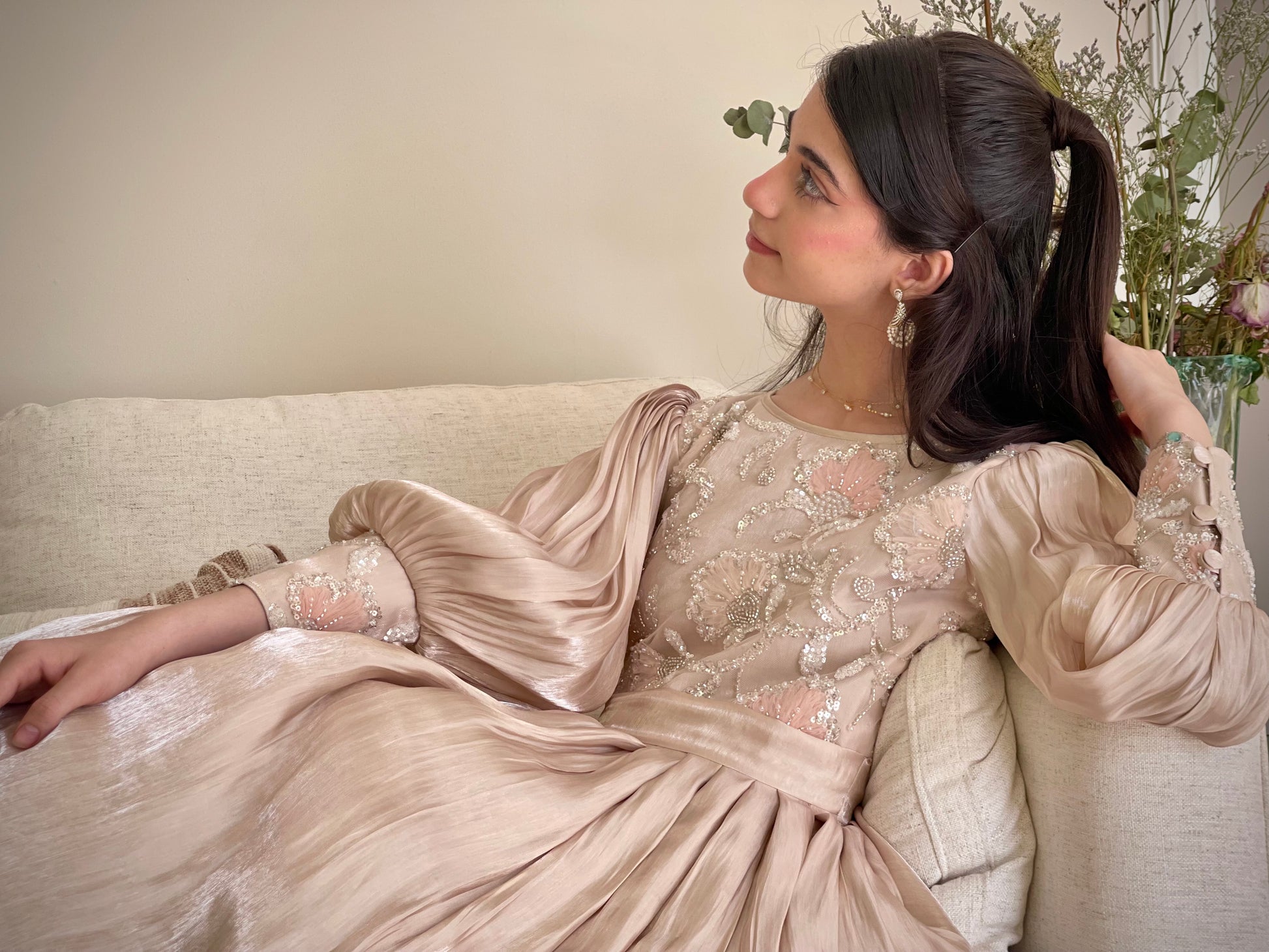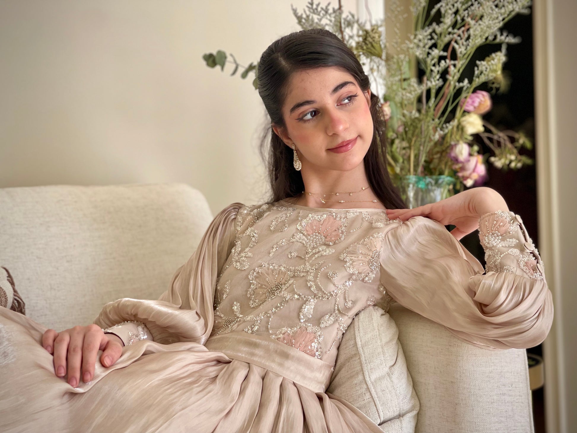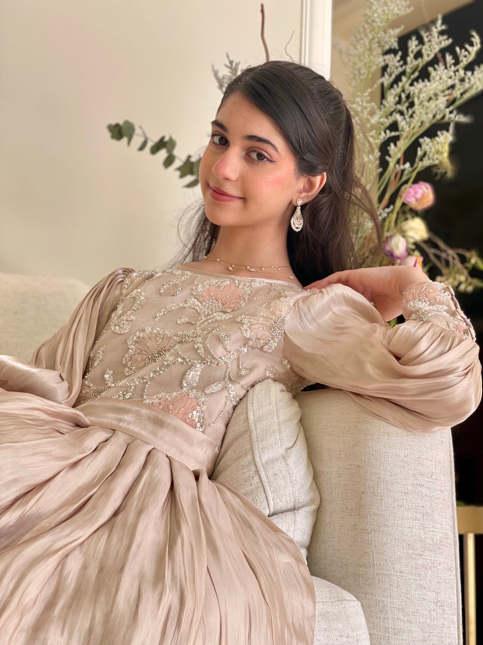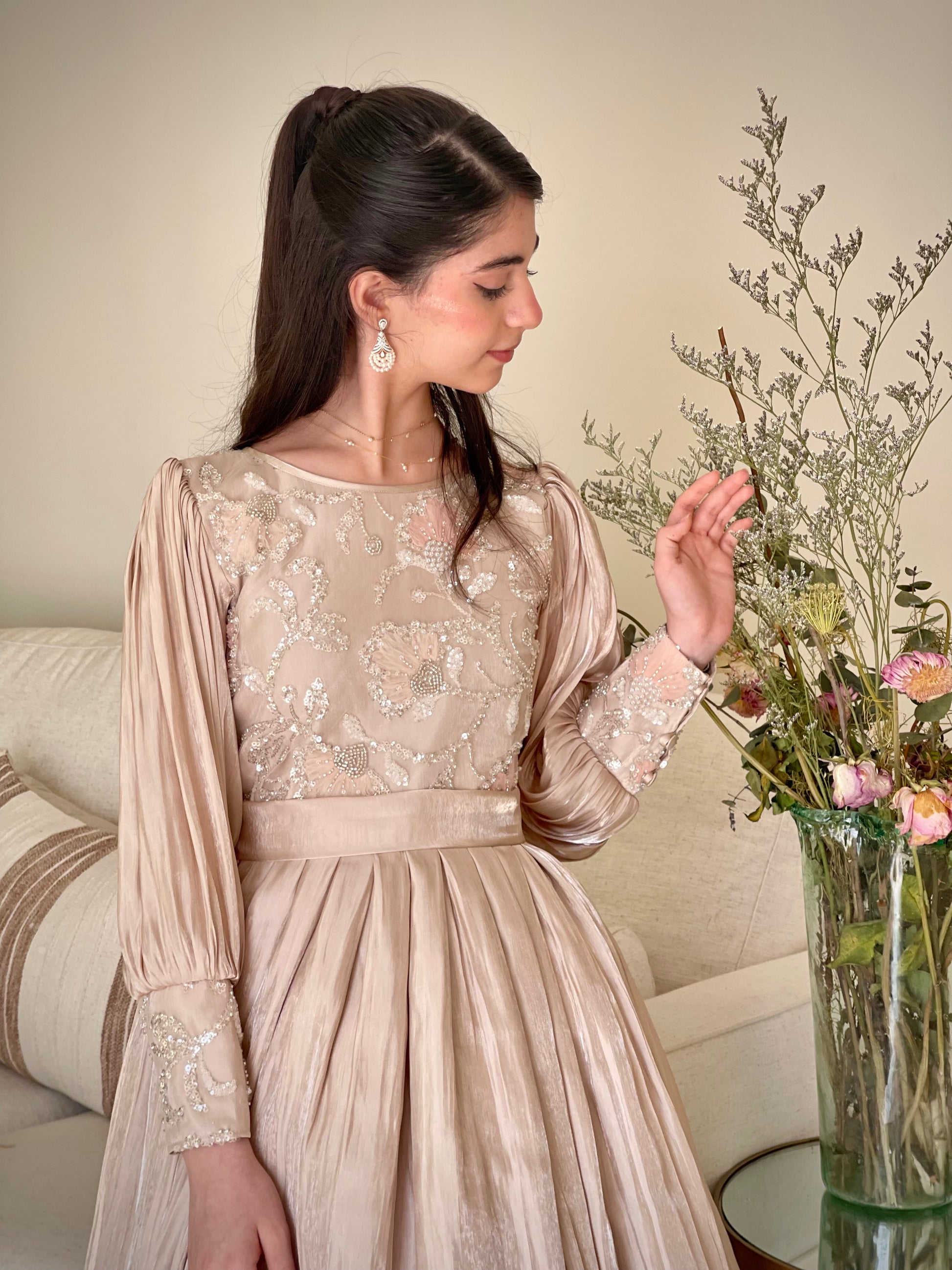 فستان روز ارجنزا مع صدرية مشغوله وجيبون داخلي منفصل