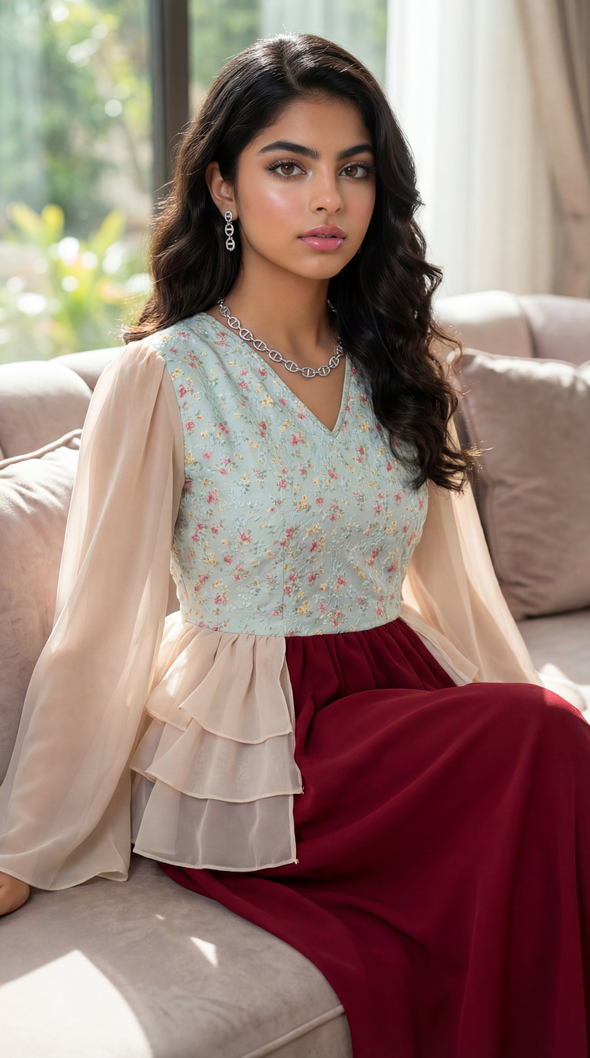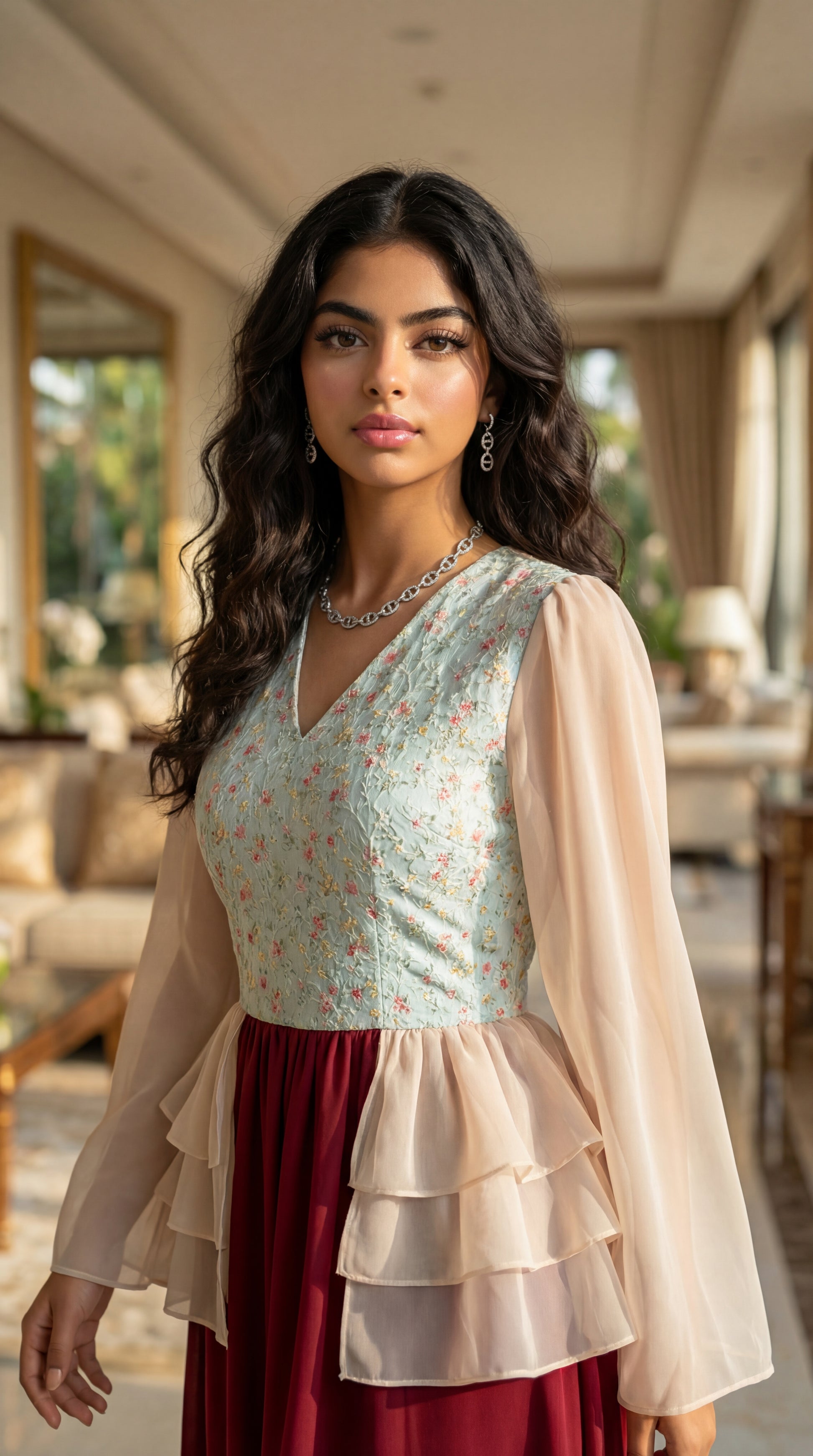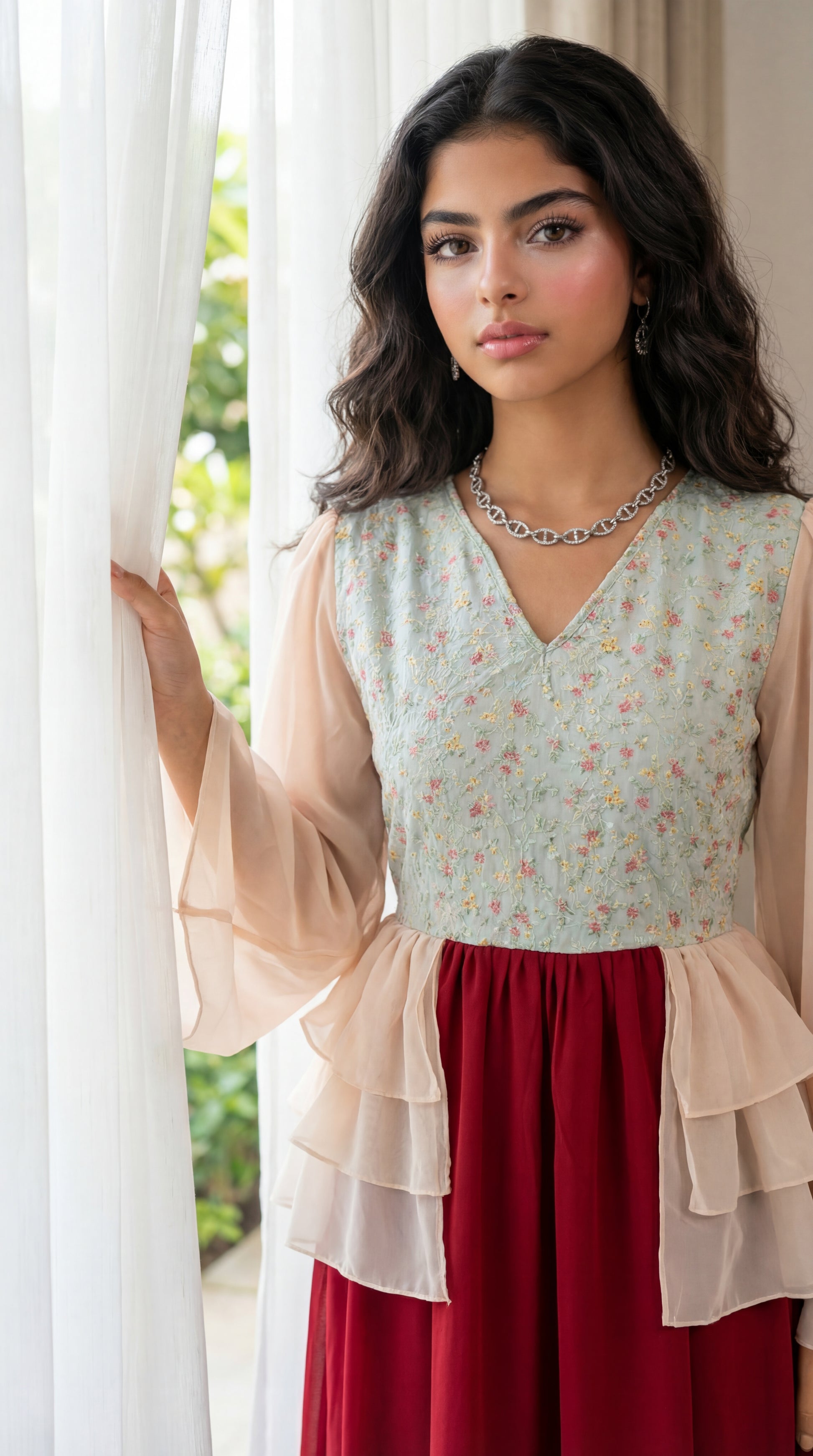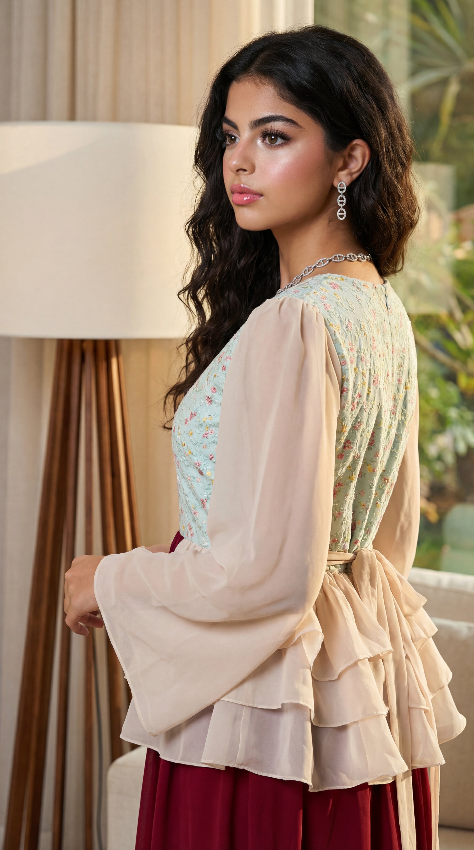 فستان شيفون مع صدرية مخروز