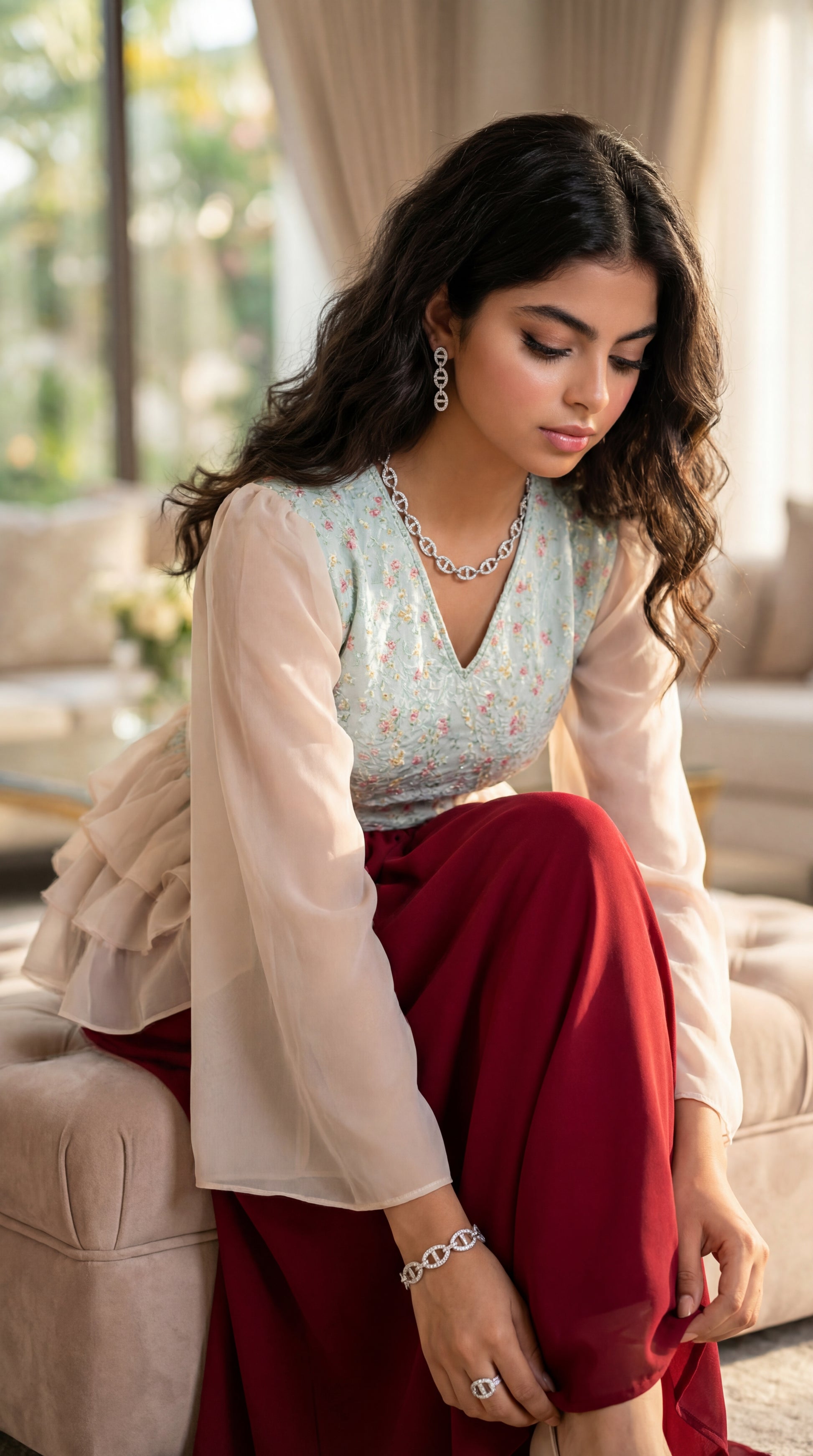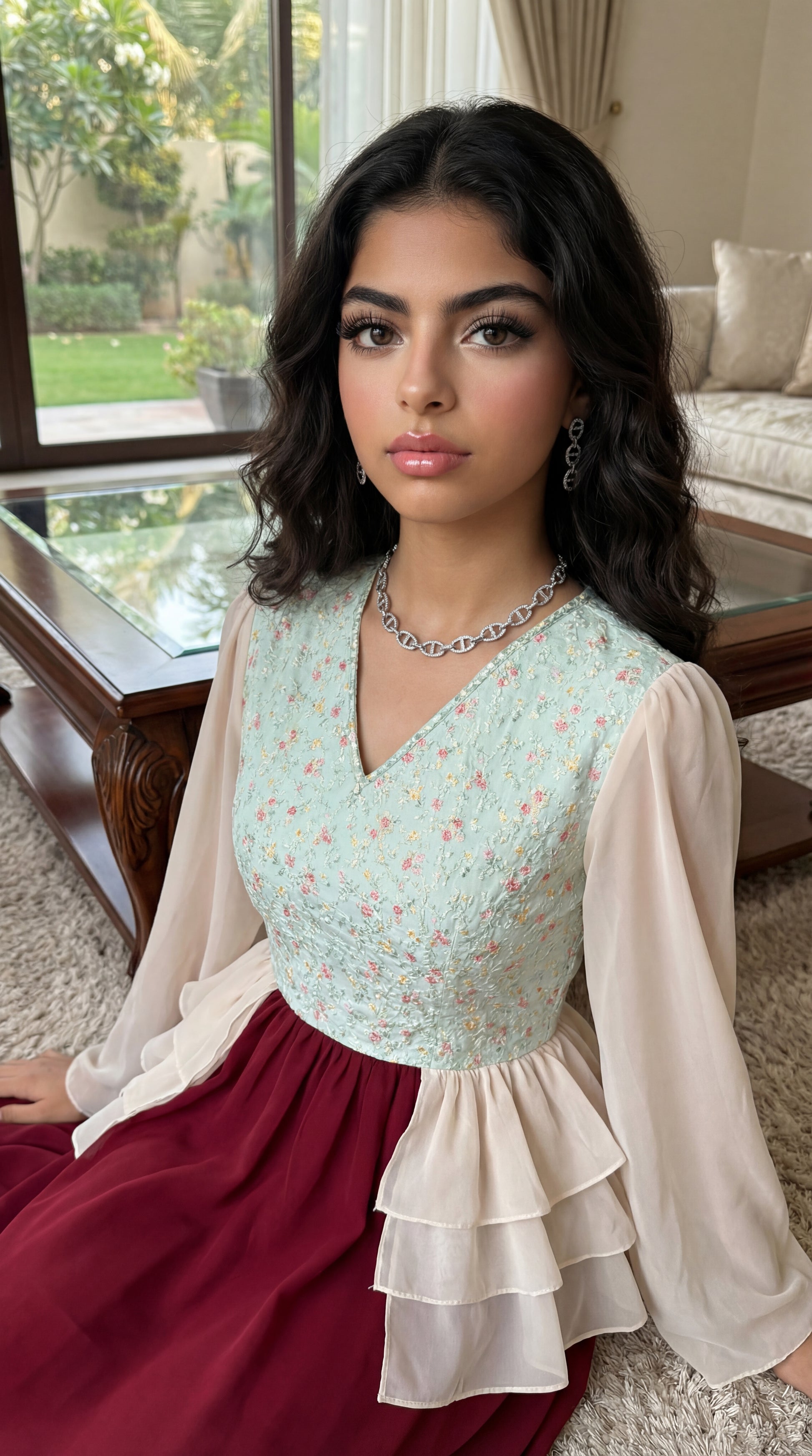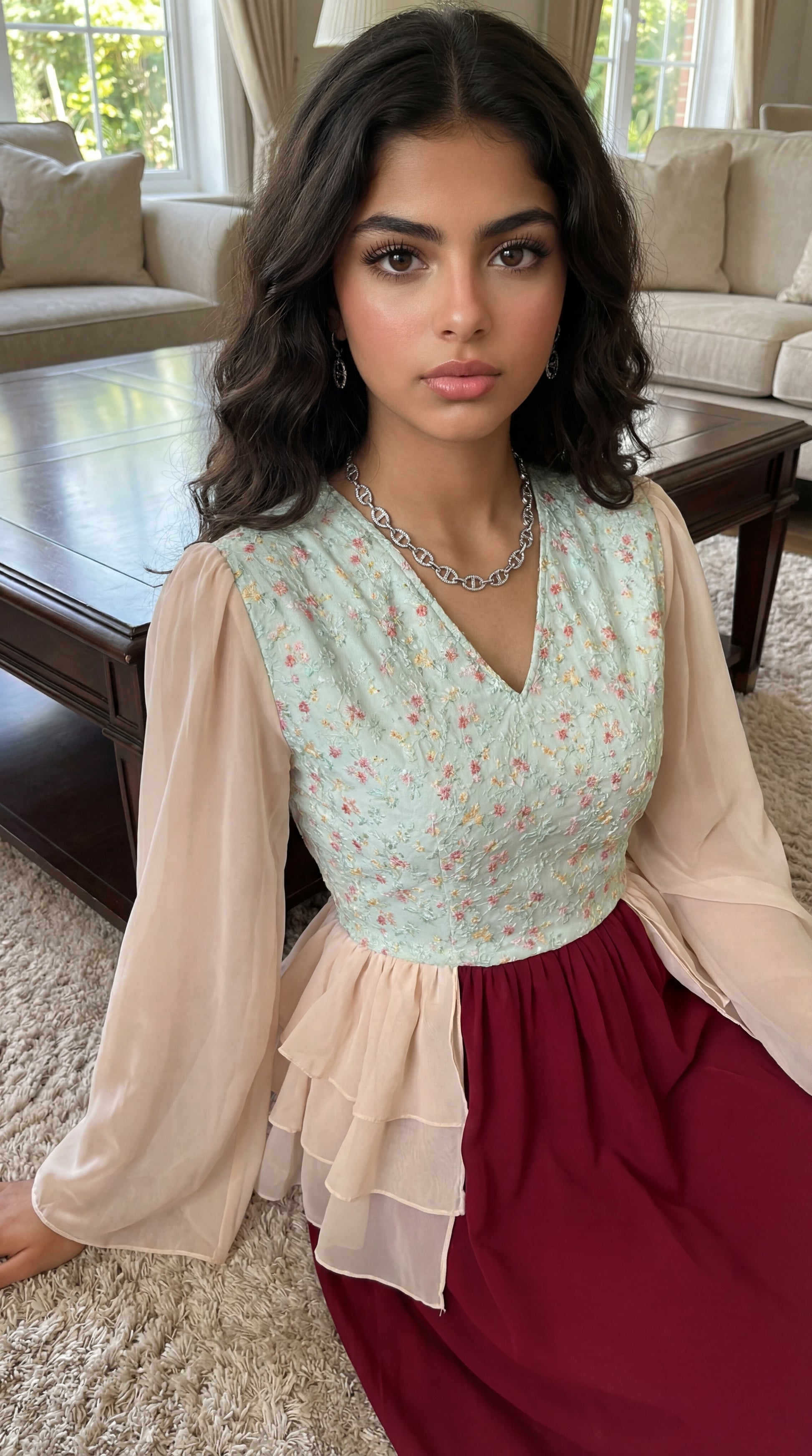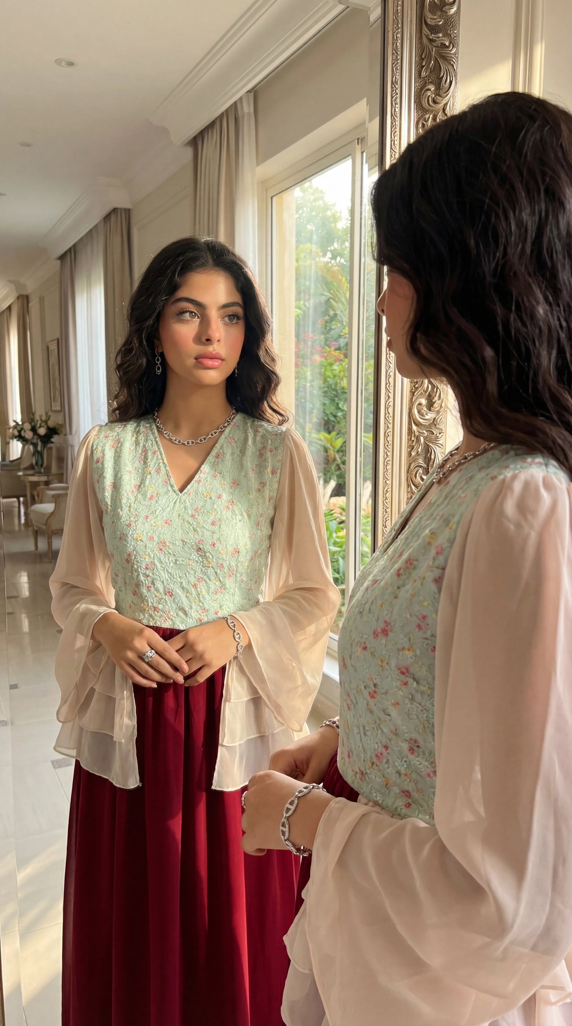 فستان شيفون مع صدرية مخروز