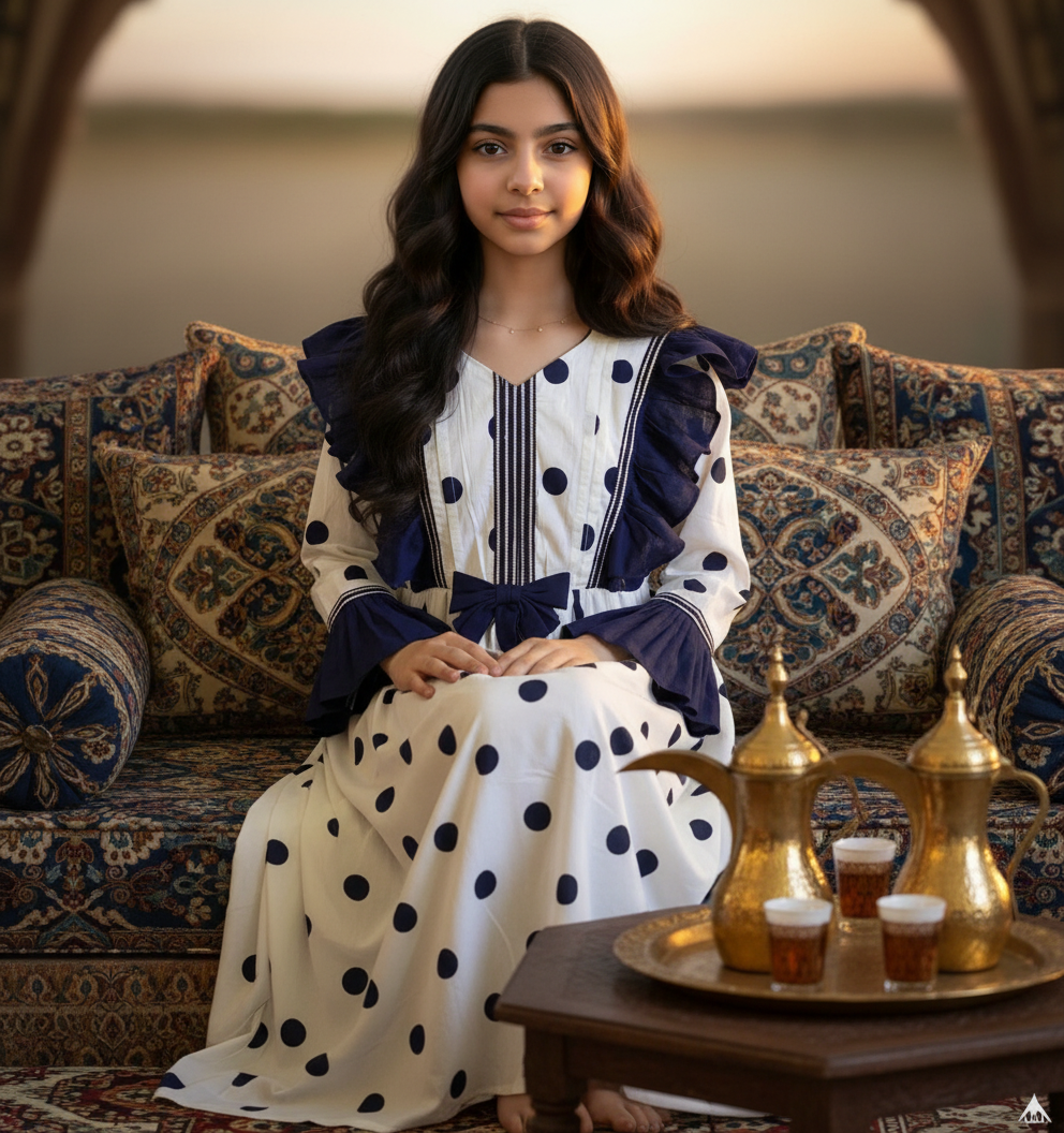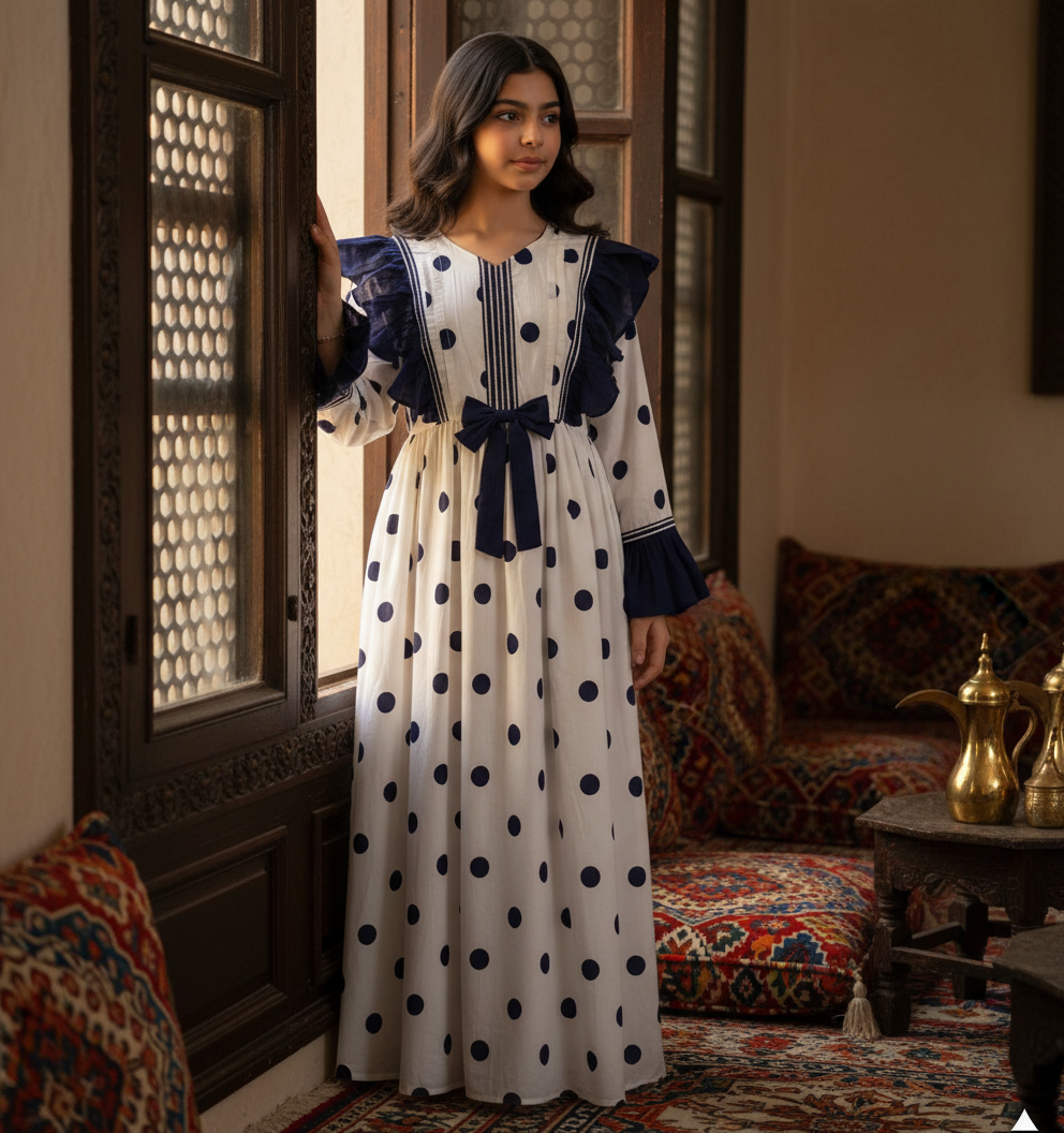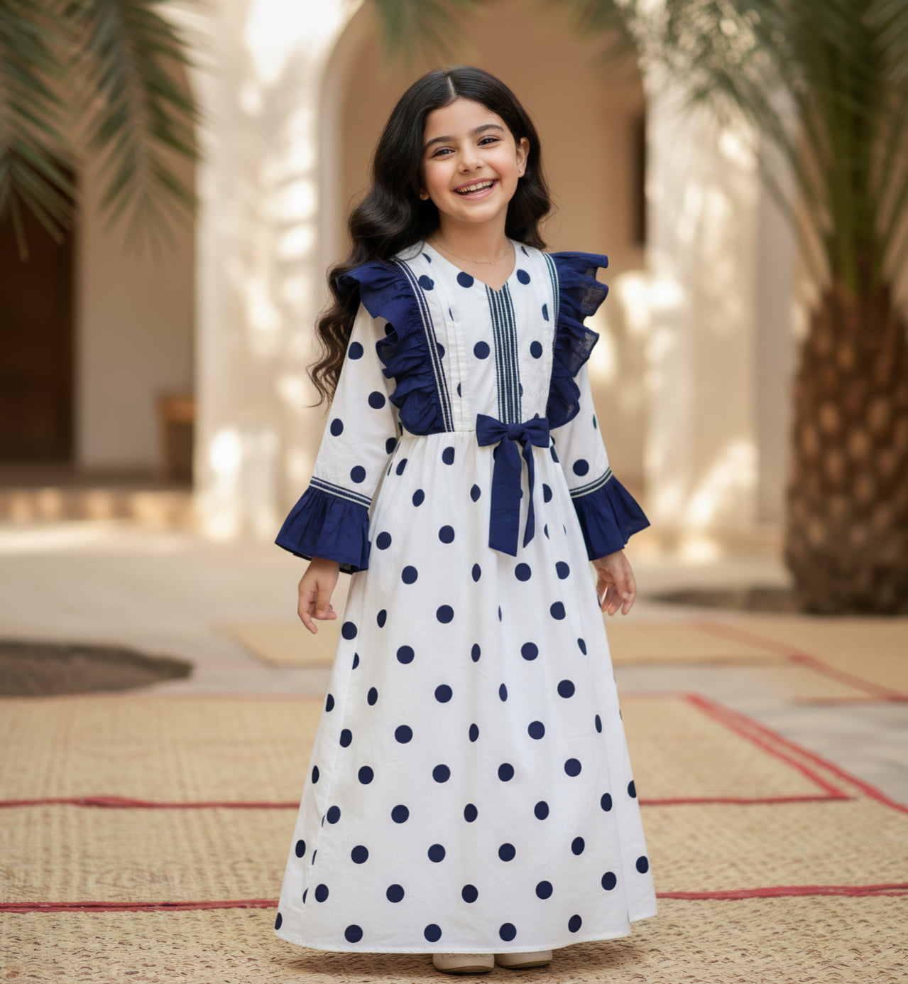 اختاري المقاس المناسب لأبنتكِ لا تعديل و لا تبديل من خلال اتباع القياسات الآتيه الصدر فقط من الامام