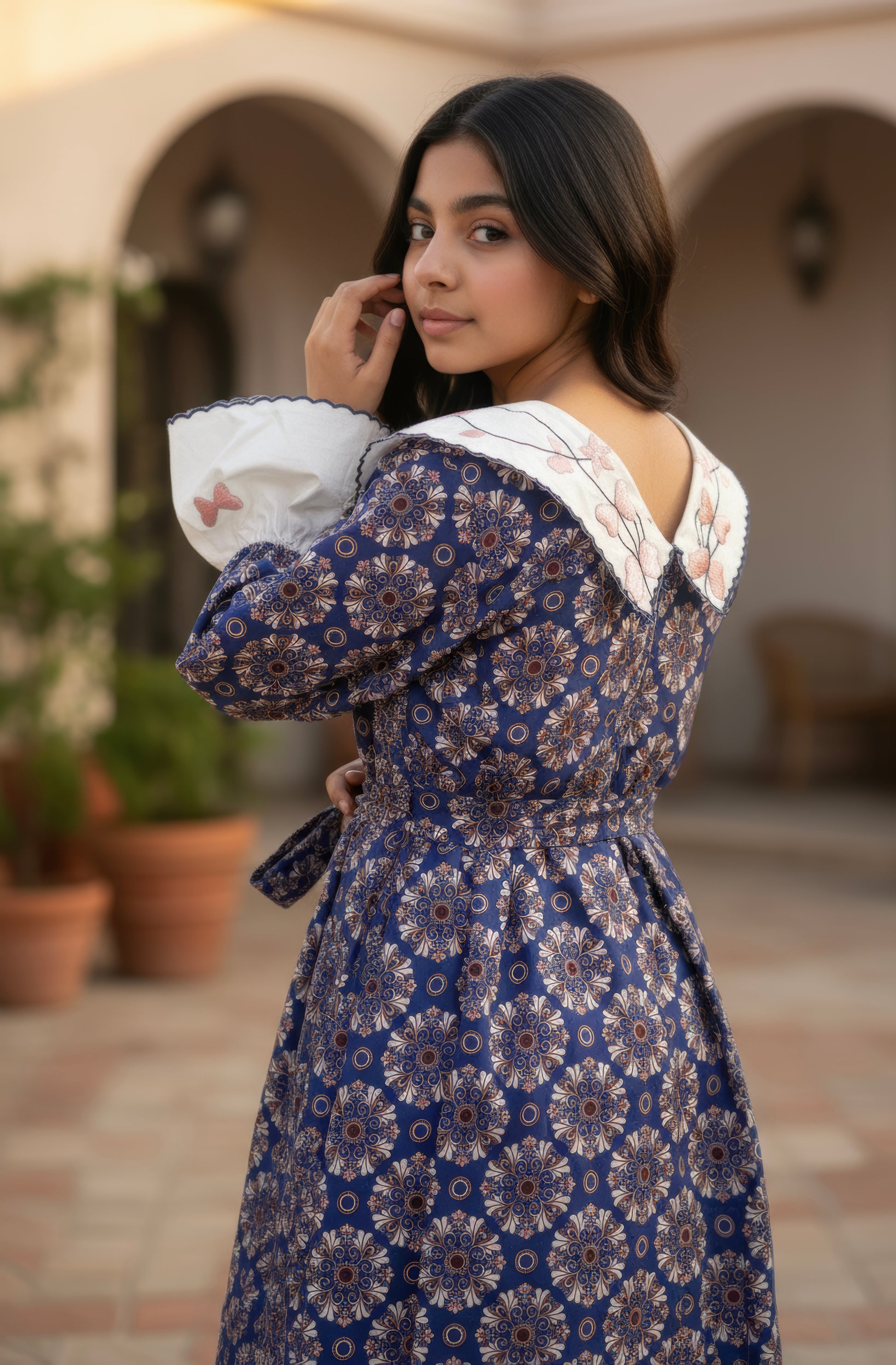 فستان قطن مع تطريز ودمج الساده