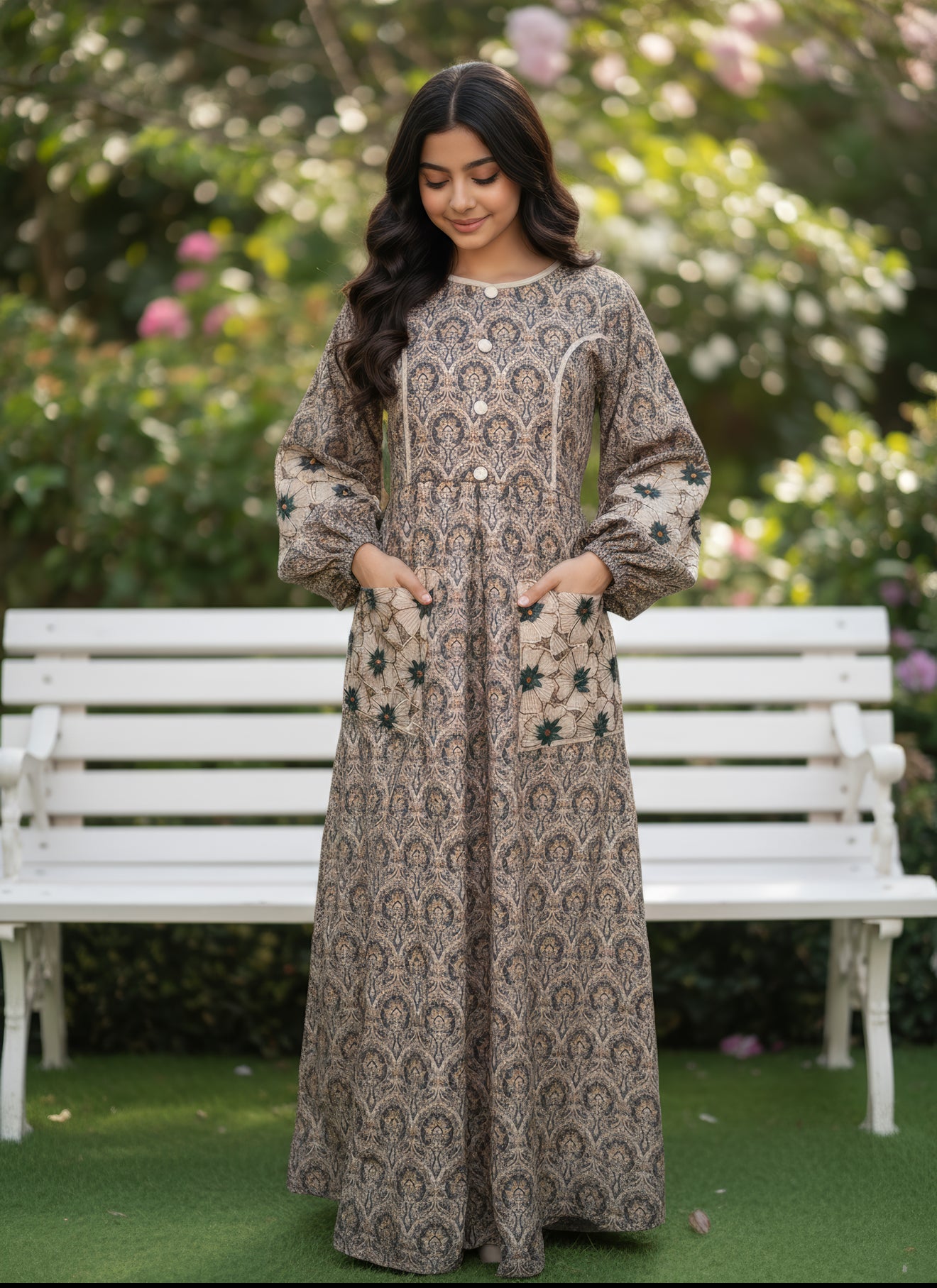 اختاري المقاس المناسب لأبنتكِ لا تعديل و لا تبديل من خلال اتباع القياسات الآتيه الصدر فقط من الامام
