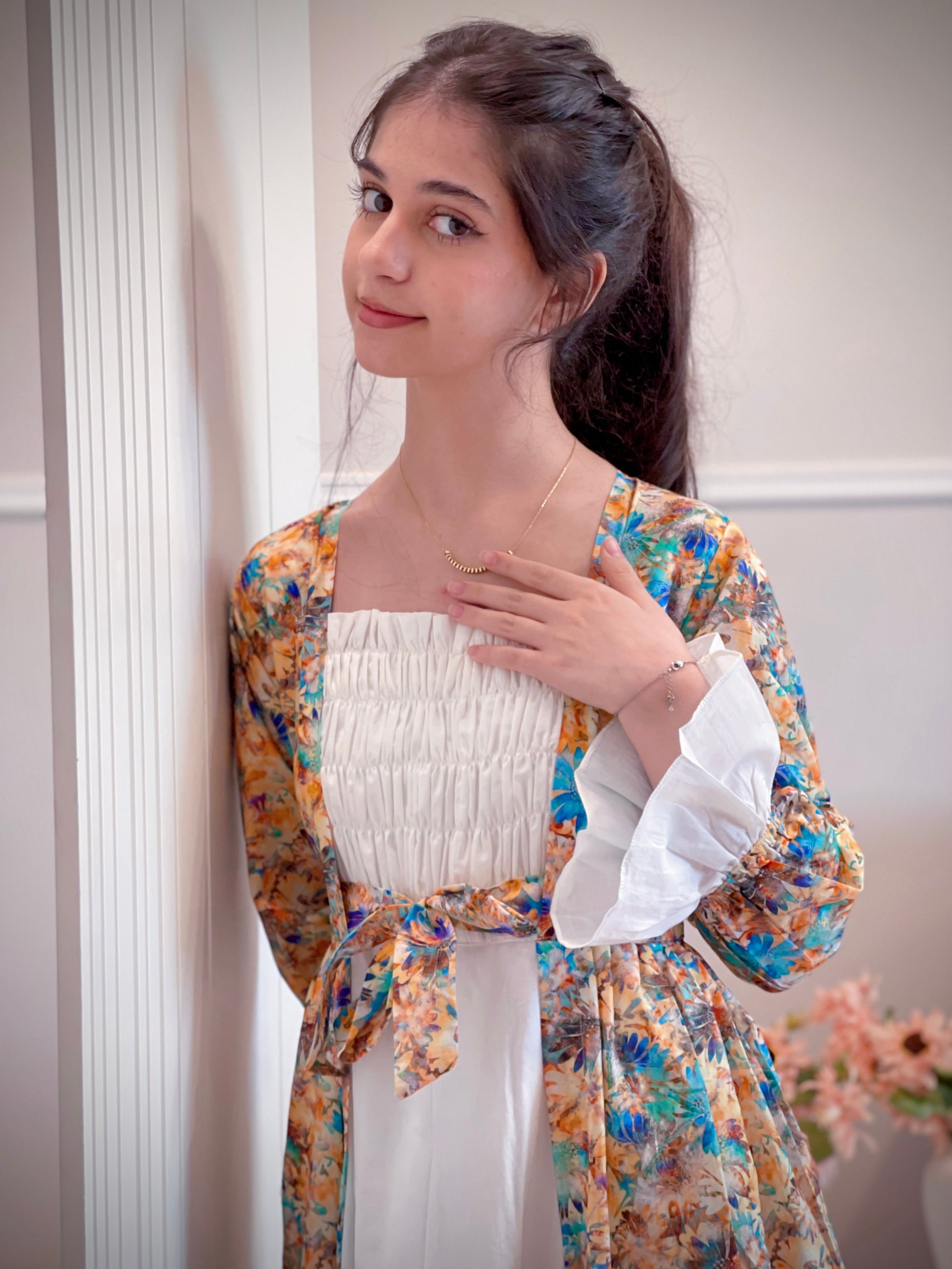 اختاري المقاس المناسب لأبنتكِ لا تعديل و لا تبديل من خلال اتباع القياسات الآتيه الصدر فقط من الامام