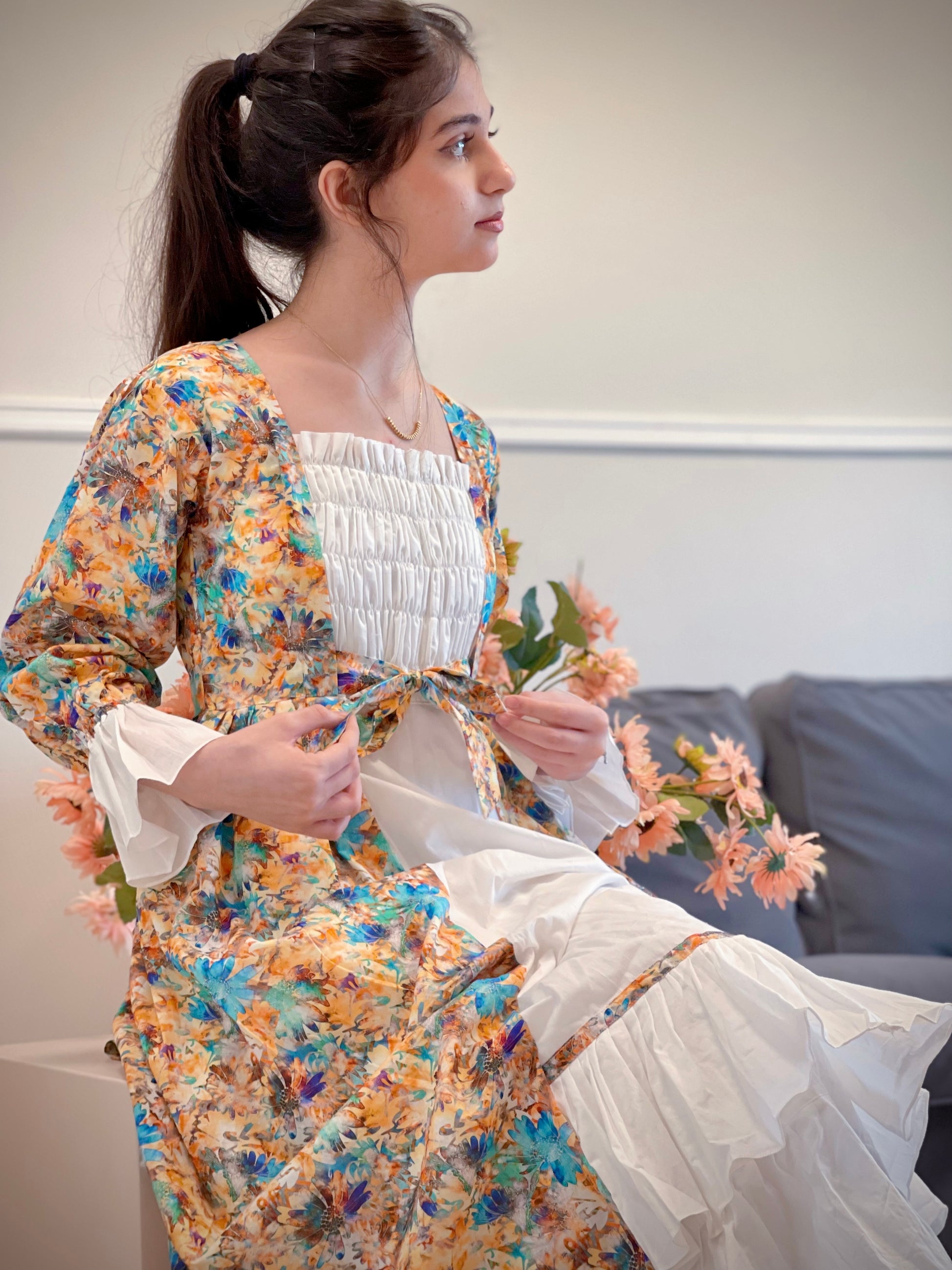 فستان قطن مع دمج السادة