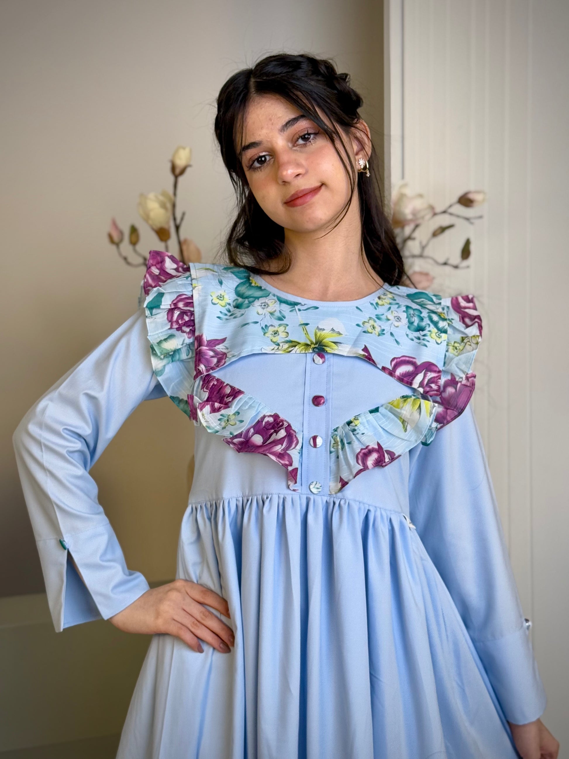 اختاري المقاس المناسب لأبنتكِ لا تعديل و لا تبديل من خلال اتباع القياسات الآتيه  الصدر فقط من الامام