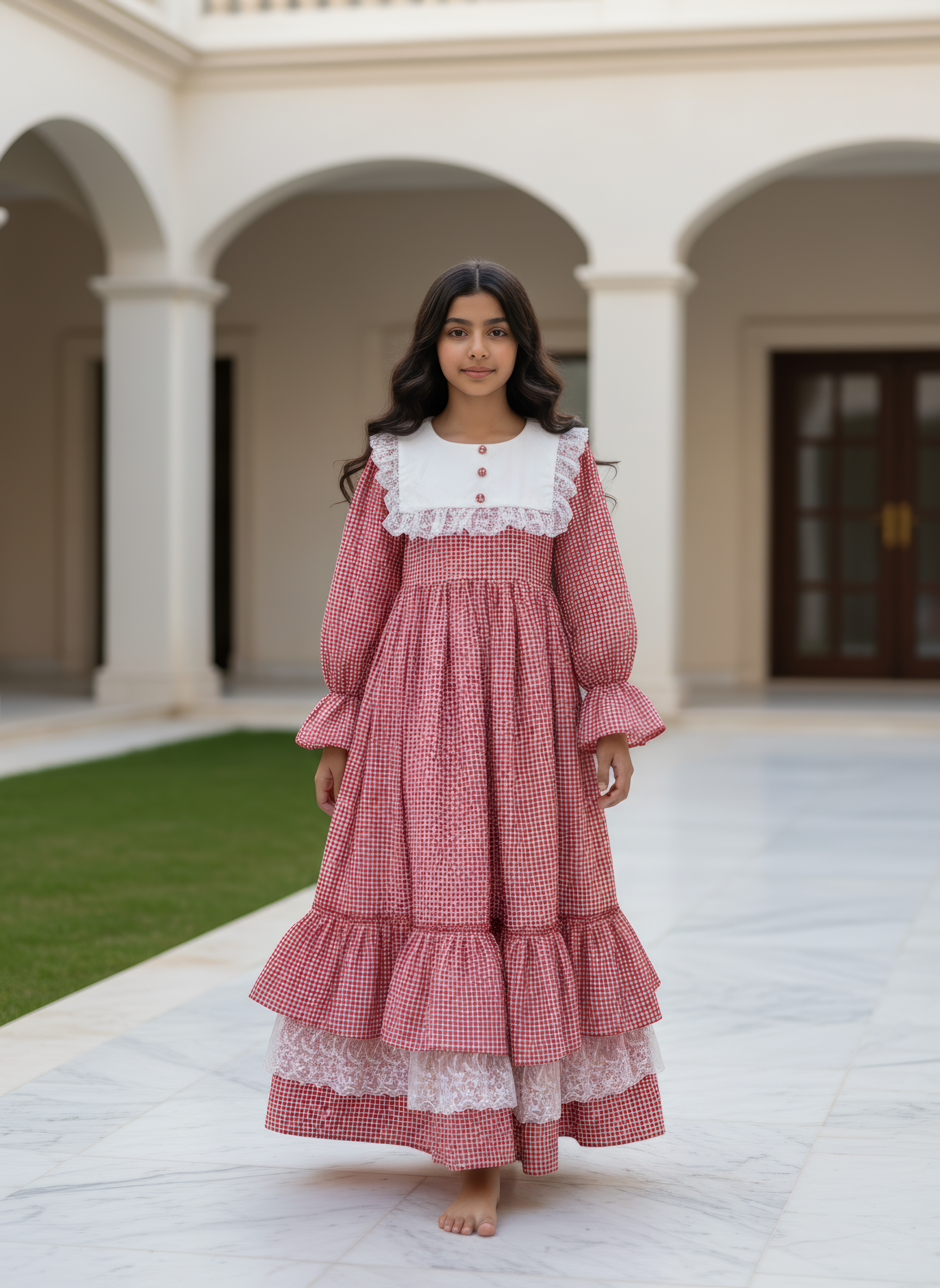 اختاري المقاس المناسب لأبنتكِ لا تعديل و لا تبديل من خلال اتباع القياسات الآتيه  الصدر فقط من الامام