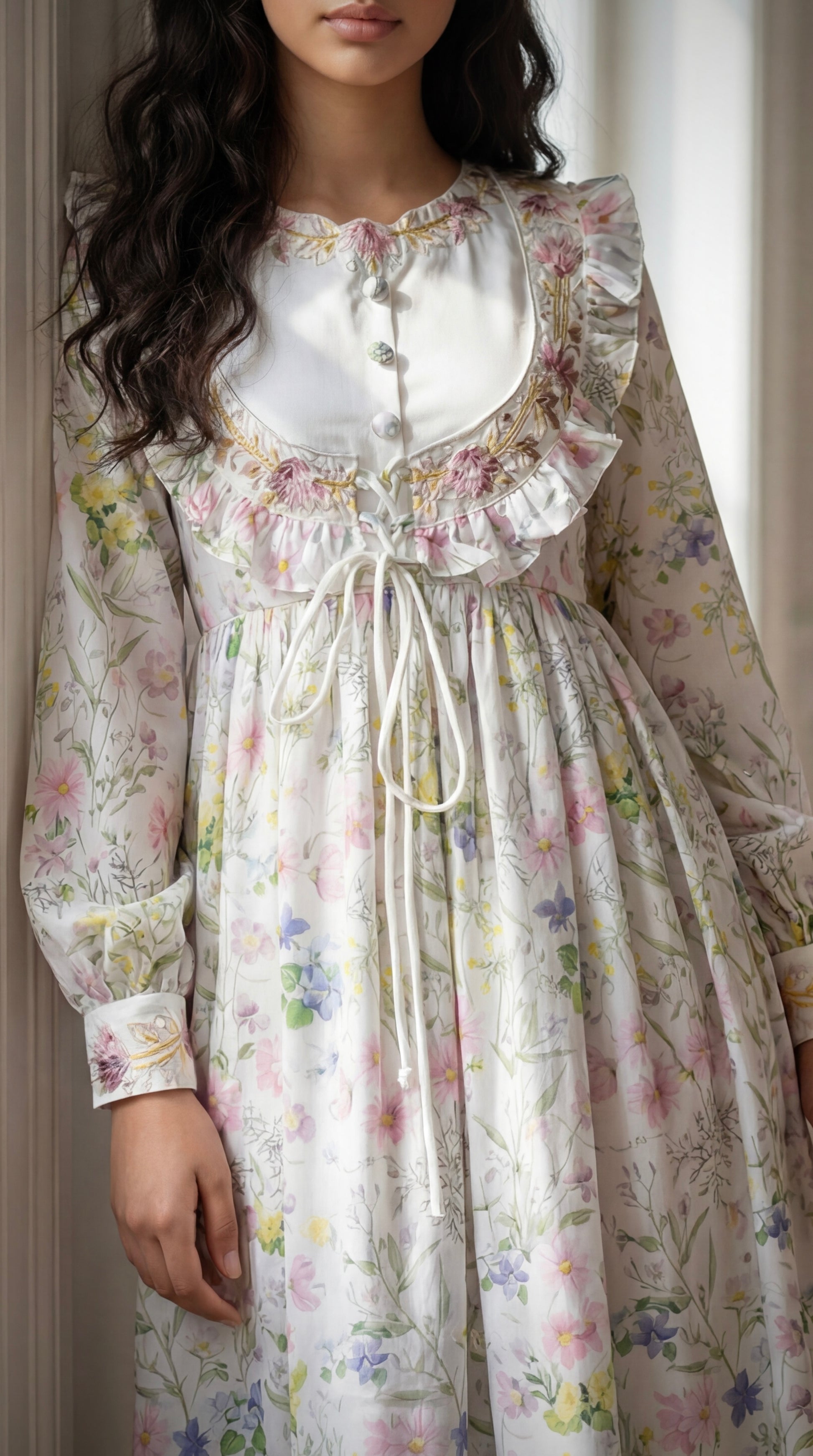 فستان من الحرير مع تطريز على شكل جاكيت