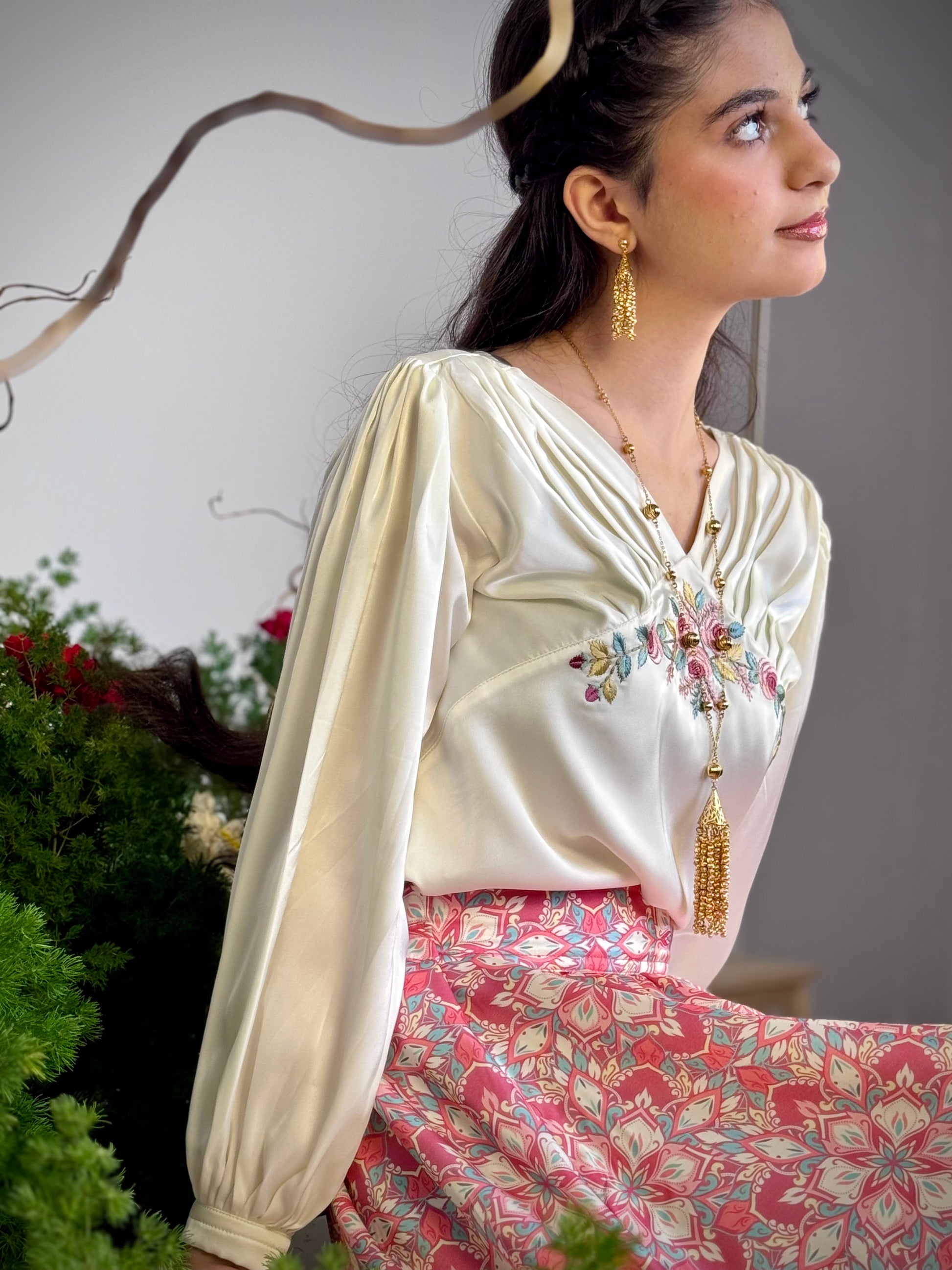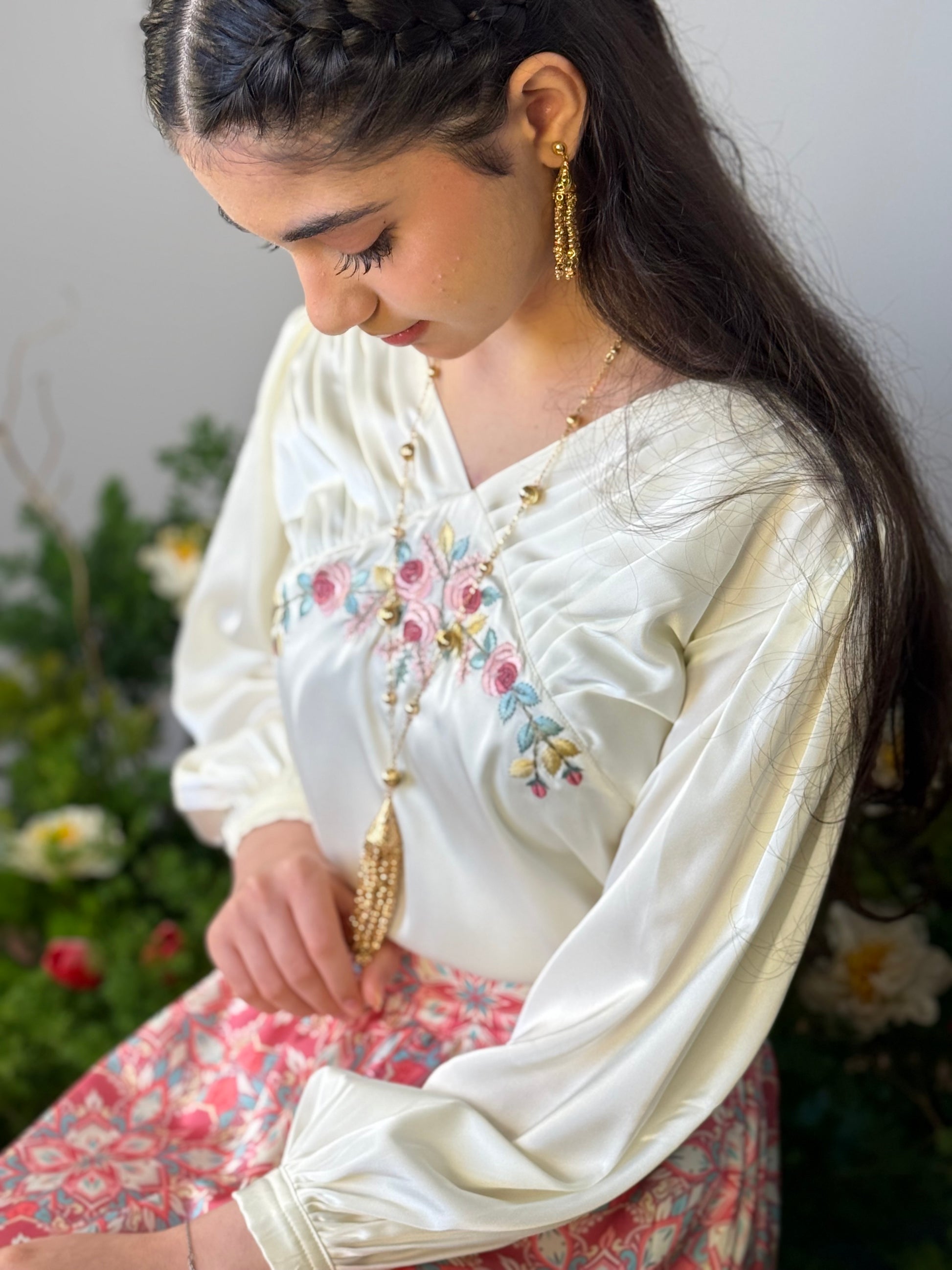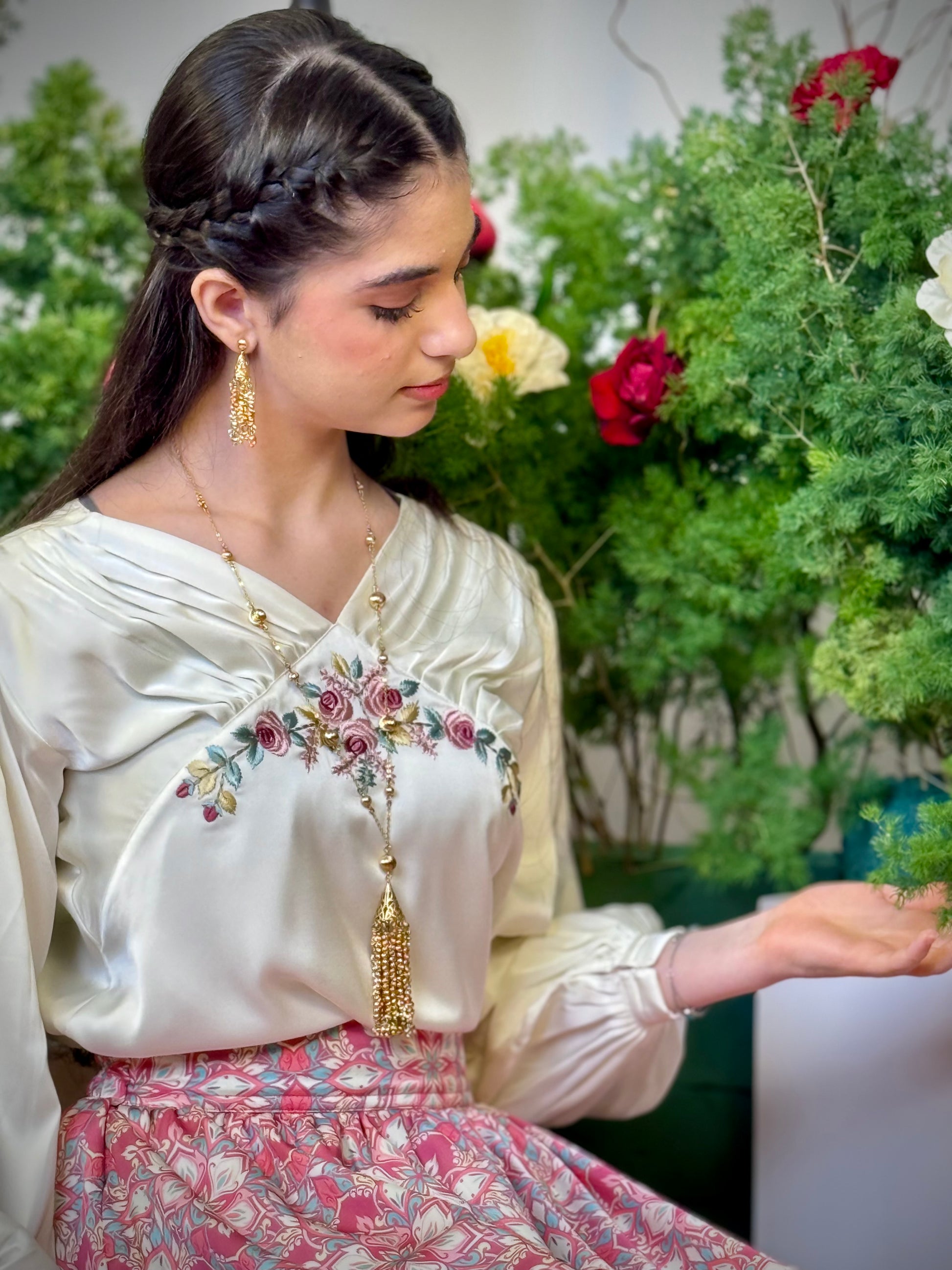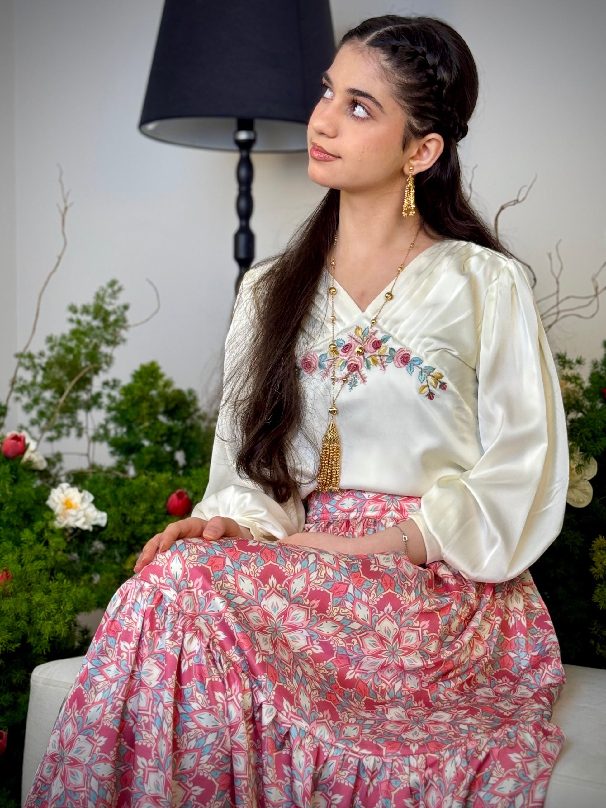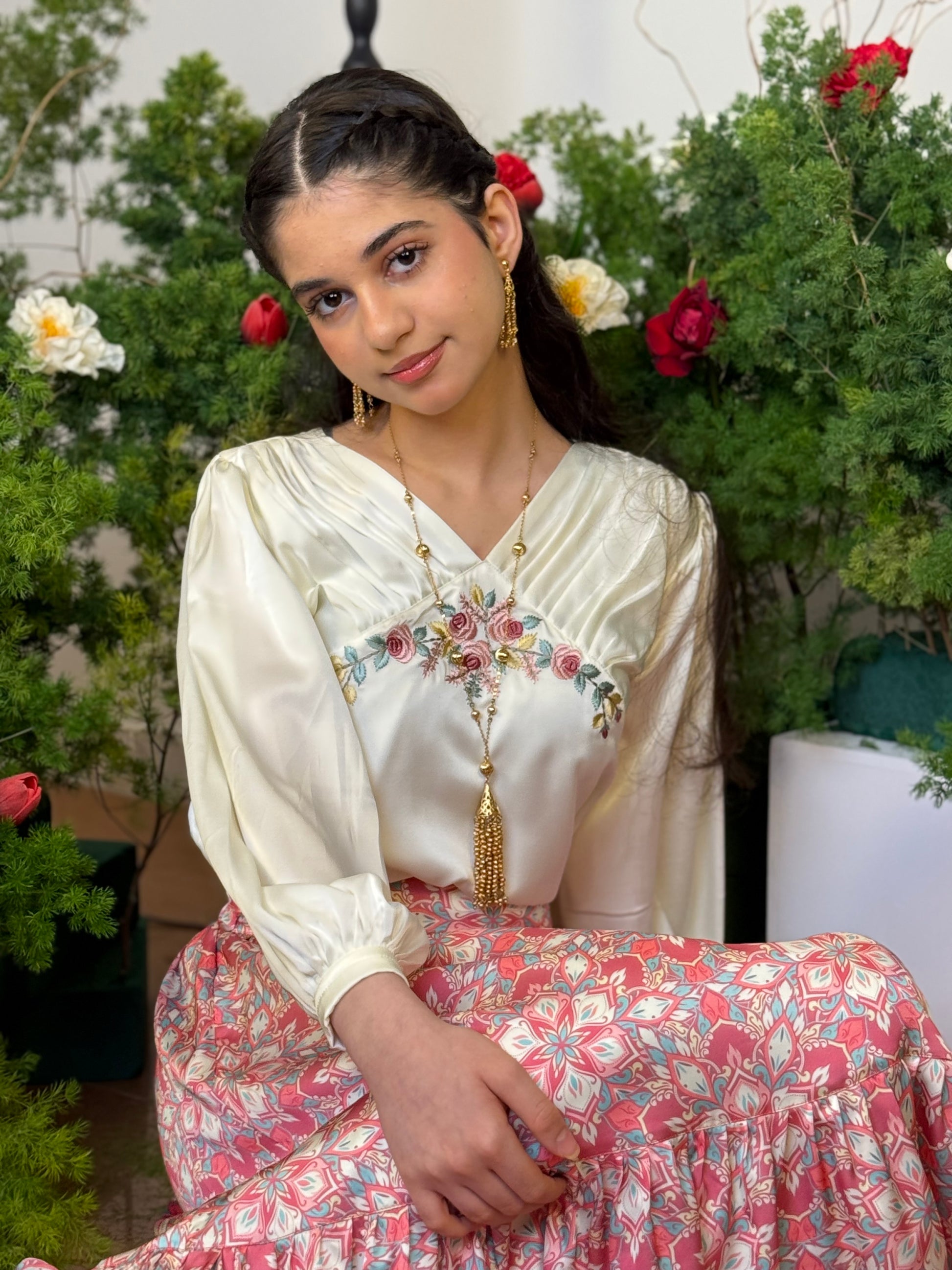 | مقاس الصدر 17m | طول التنورة 36 | ميديم (10-11 سنوات ) |
