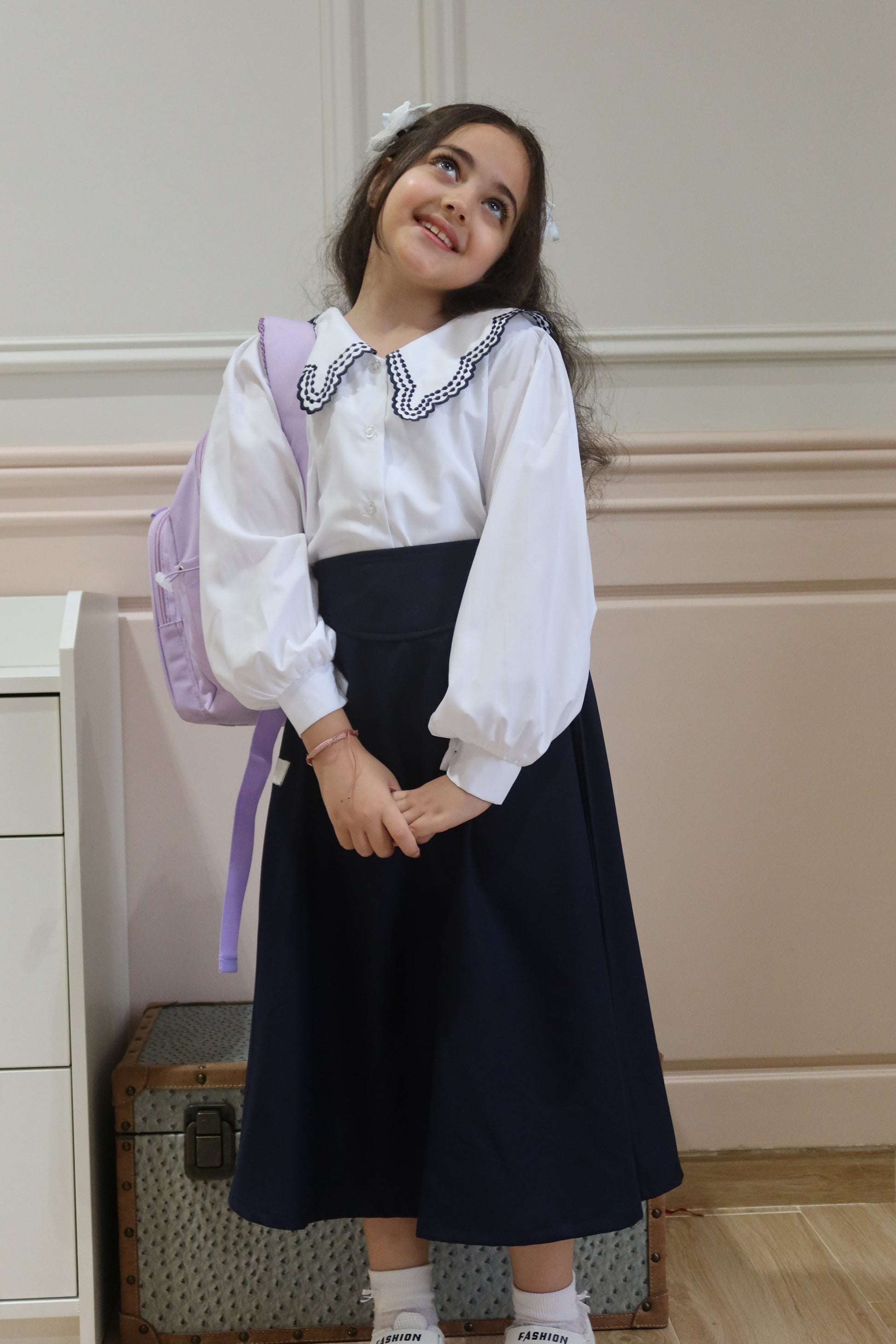 | العمر (سنوات) | مقاس القميص (إنش) | طول التنورة (إنش) | المقاس |