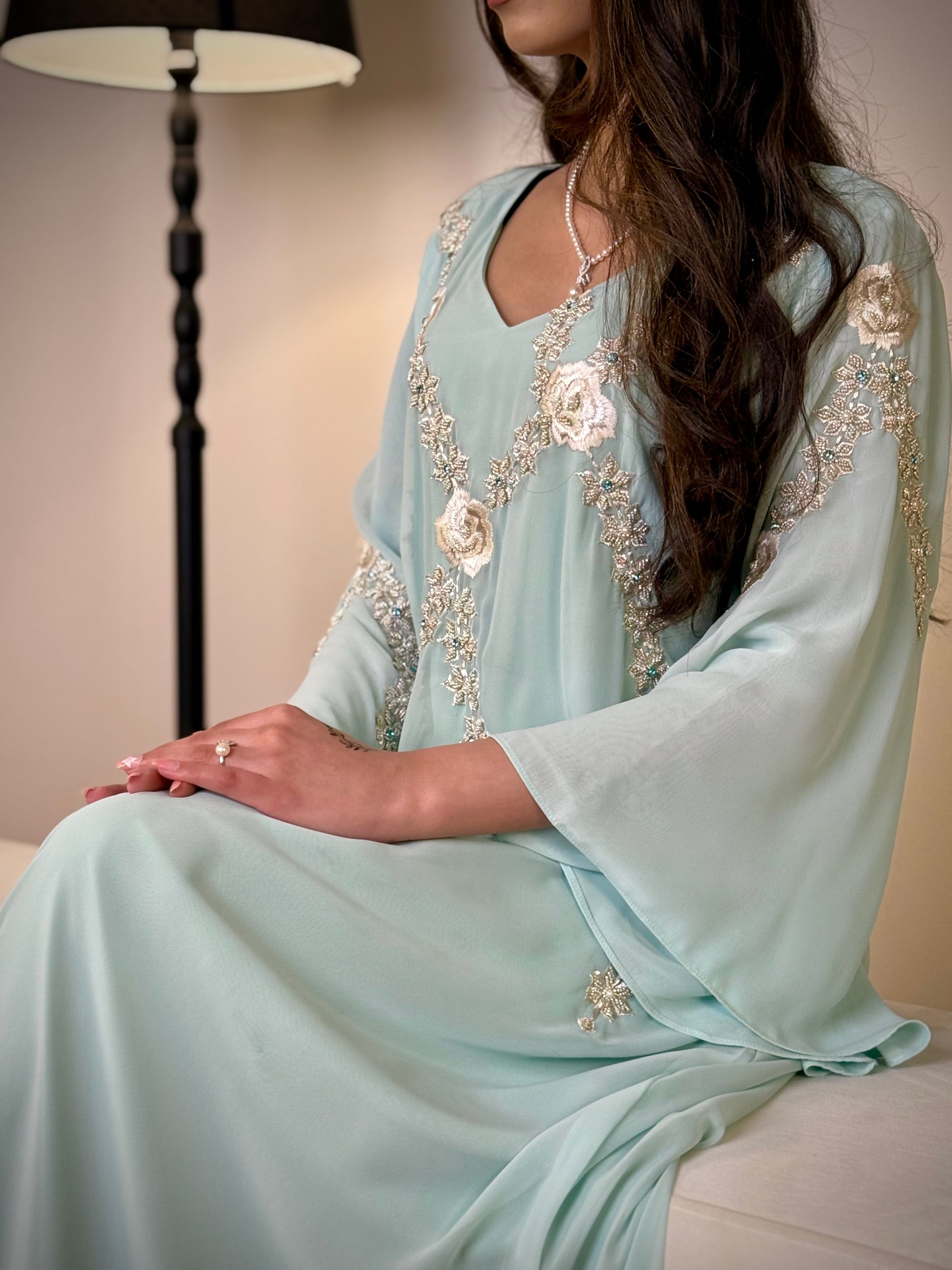 • مقاس Large: الصدر 22 إنش، الطول حسب طلب الزبونة