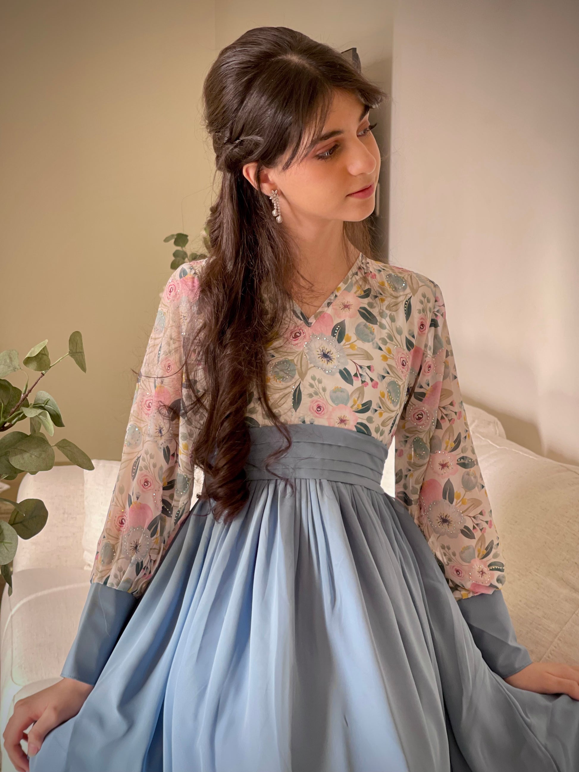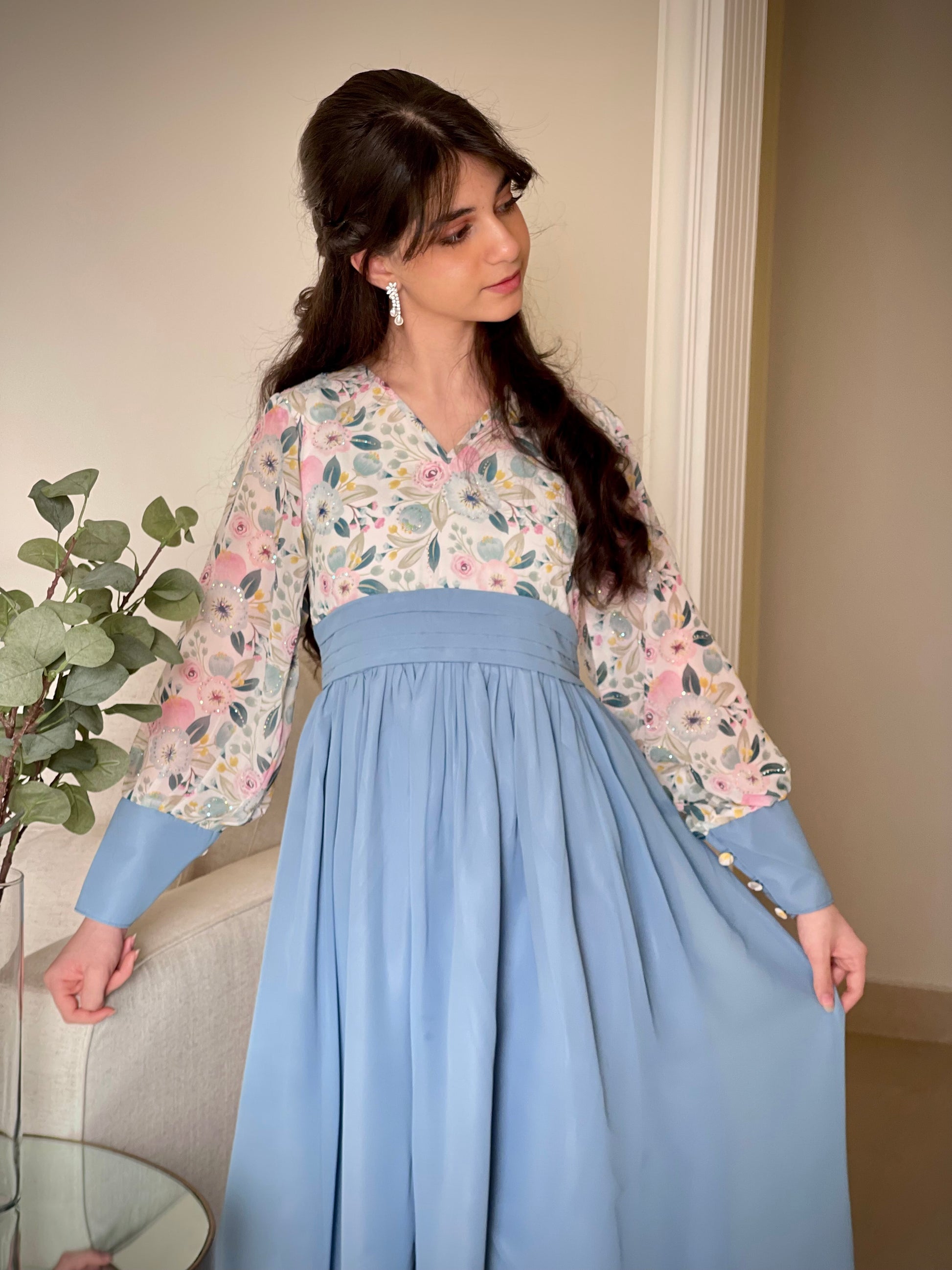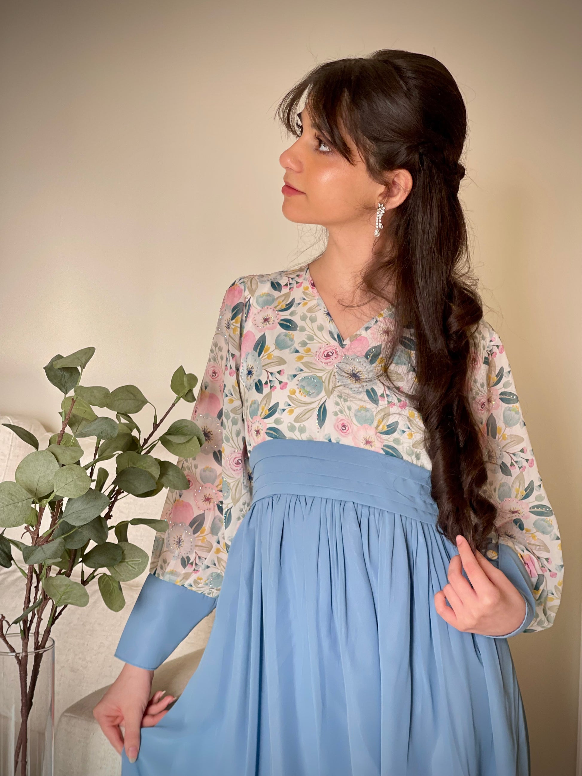 فستان شيفون فصوص مع ساده تسليم قبل العيد